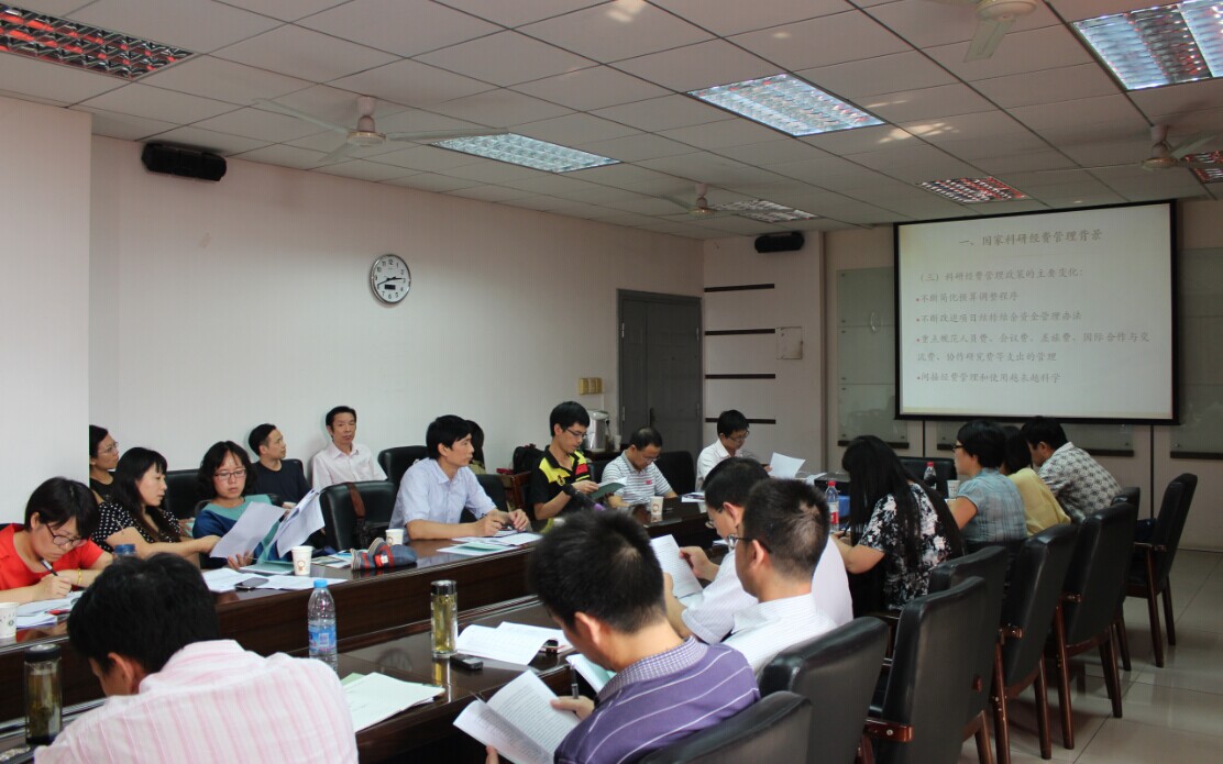 会议开始,计财处副处长韩英霞、科学技术发展研究院人文社科处项目管理办公室主任朱晓分别做了《科研经费管理制度解读》和《科研项目管理新政策》的政策辅导报告。她们的报告根据国务院《关于改进和加强中央财政科研项目和资金管理的若干意见》(国发〔2014〕11号),详细介绍了国家财政科研项目和科研经费管理政策的出台背景,科研项目和科研经费管理责任、监管内容、管理政策的变化,学校加强科研项目和经费管理的具体制度和主要措施,并针对目前科研管理中存在的问题提出了加强科研项目和科研经费管理的意见与建议。