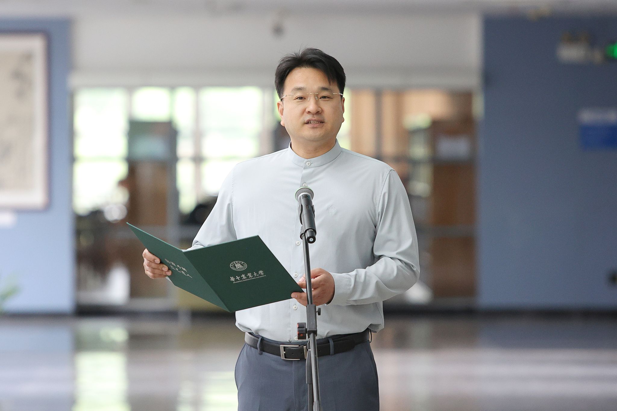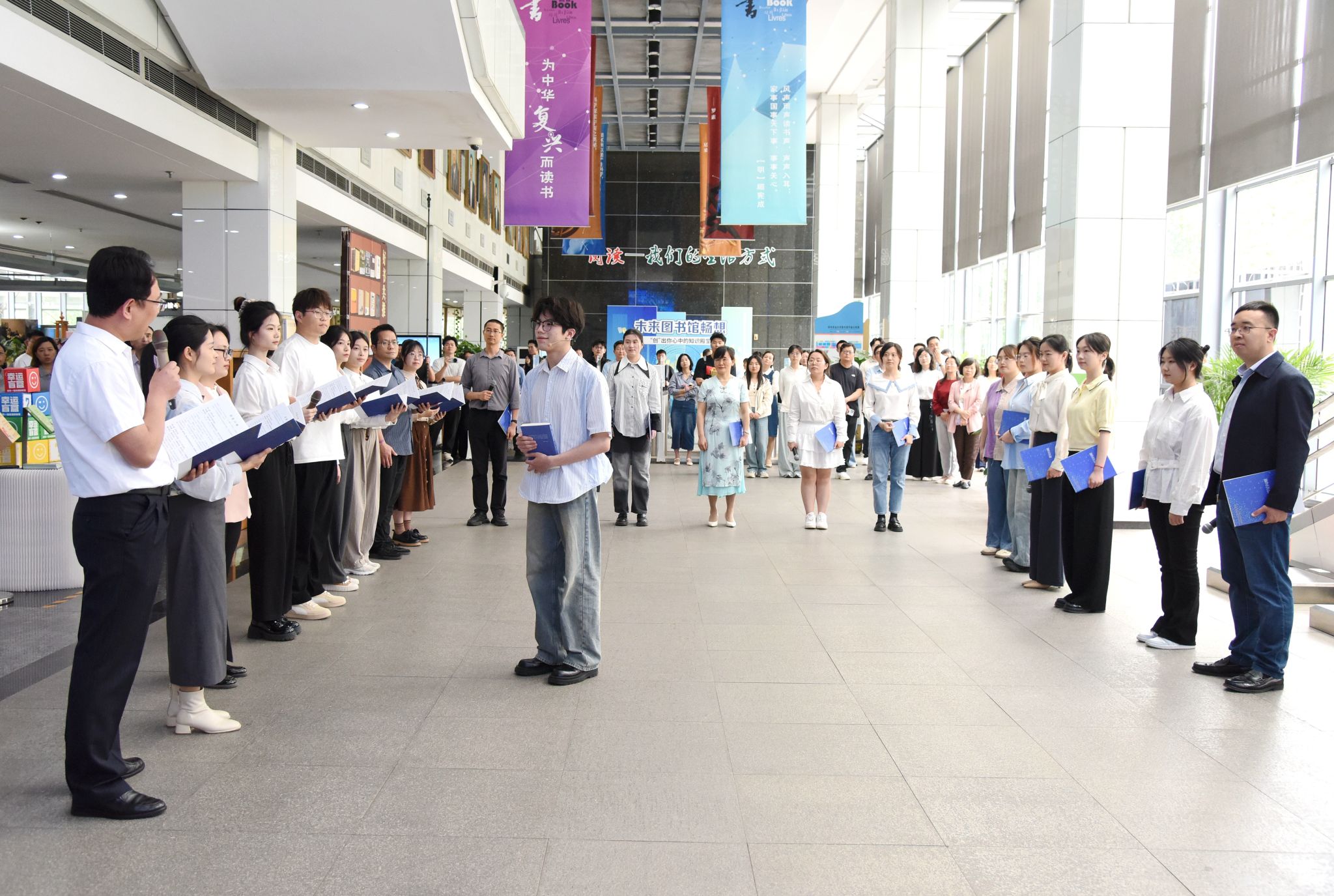 “读书能滋养心田,织就思想经纬,激荡智慧星河,唤醒灵魂深处的自由,使人与天地共鸣,与万物共情。”副校长李大鹏在致辞中表示,“希望师生们以世界读书日为契机,以书为伴,以思为舟,涵养浩然之气,追寻与天地共舞的最美和鸣。在文心交融中,丰盈生命的厚度与广度;在阅读相遇时,发现更好的你我和更美的世界!”