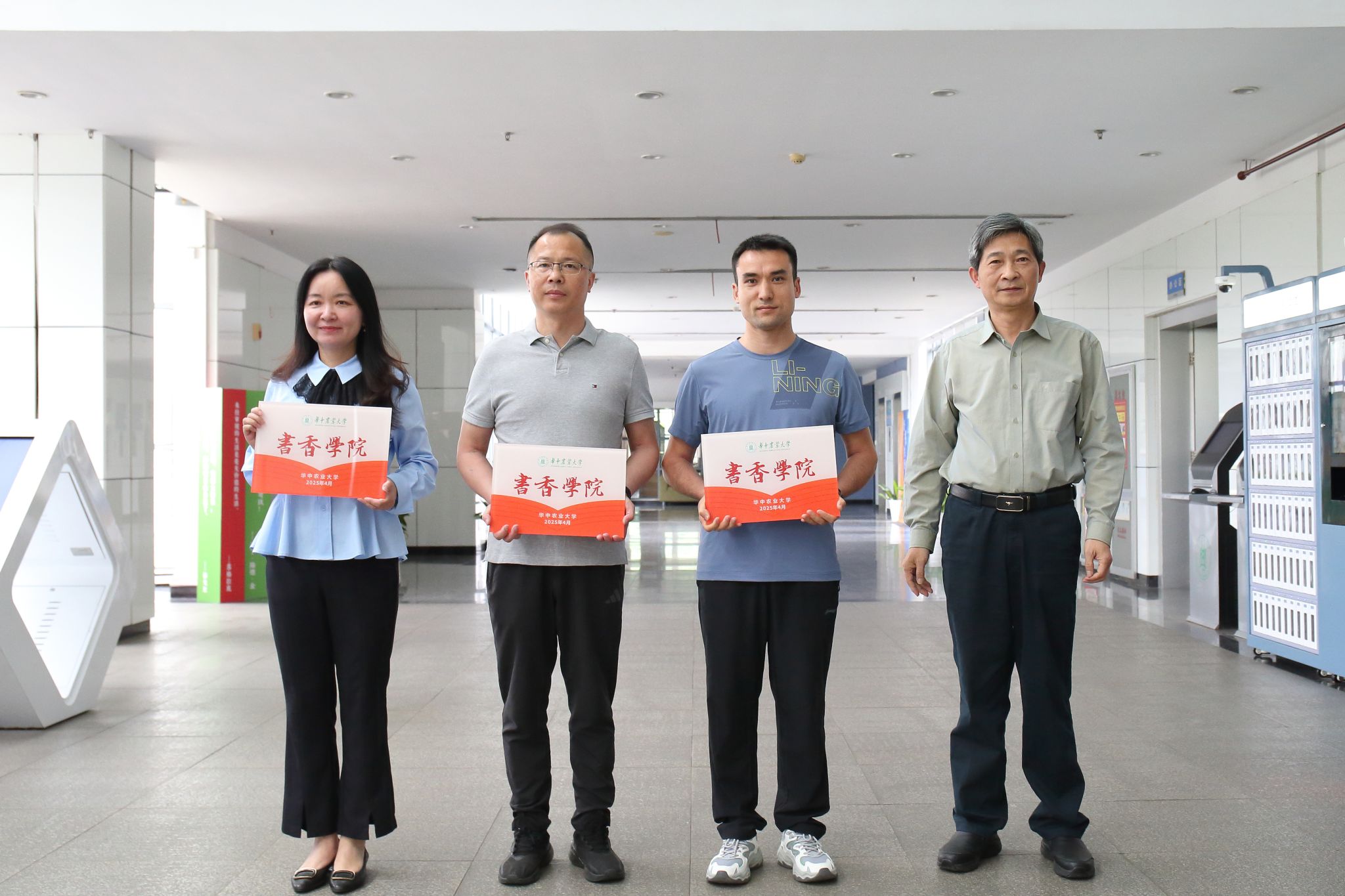 高翅和李大鹏分别为获得我校2023-2024“书香学院”的单位和2024年度“阅读之星”称号的同学颁奖。