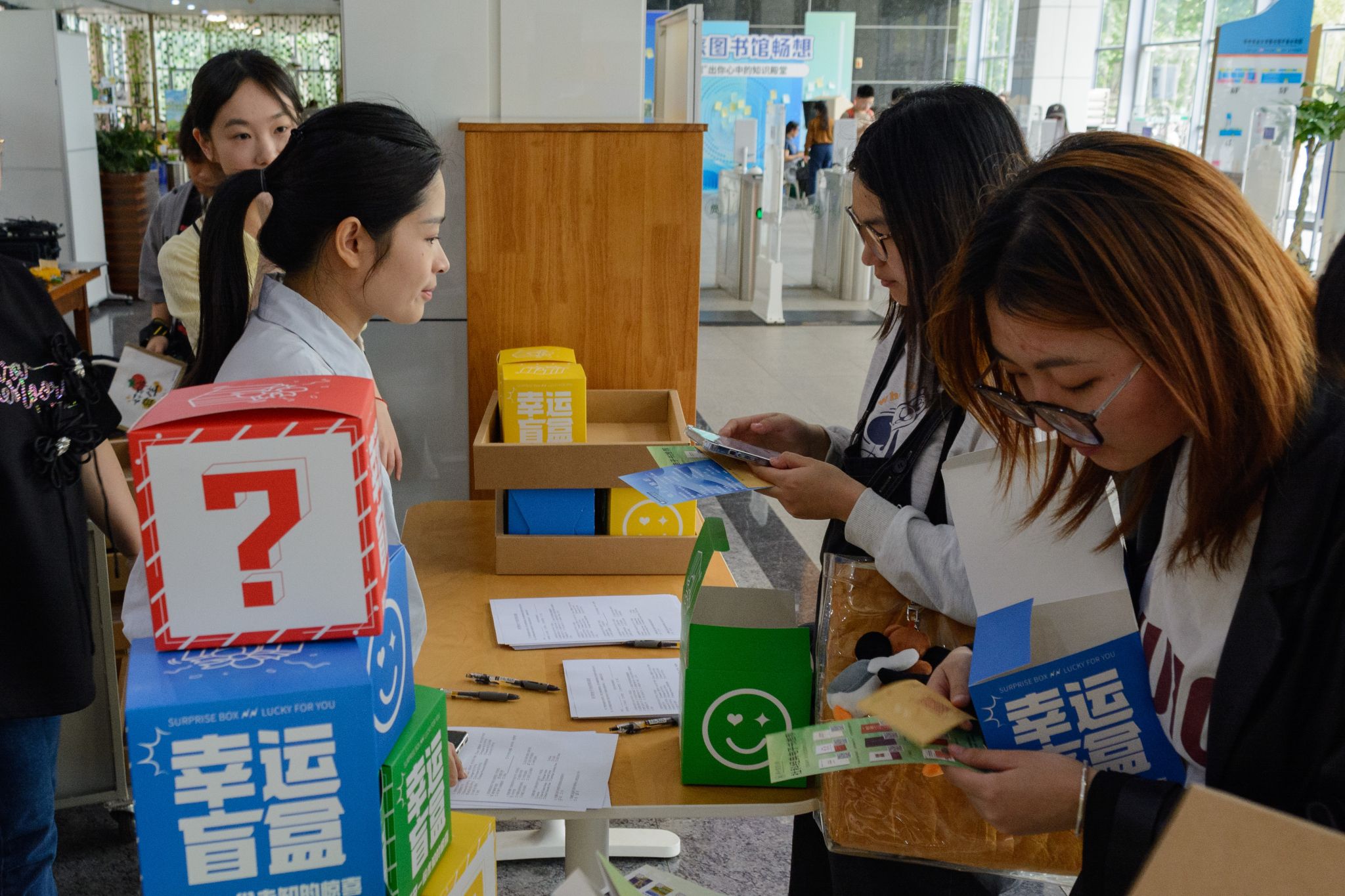 同学们体验互动开盲盒(学通社记者 陈宇轩 摄)