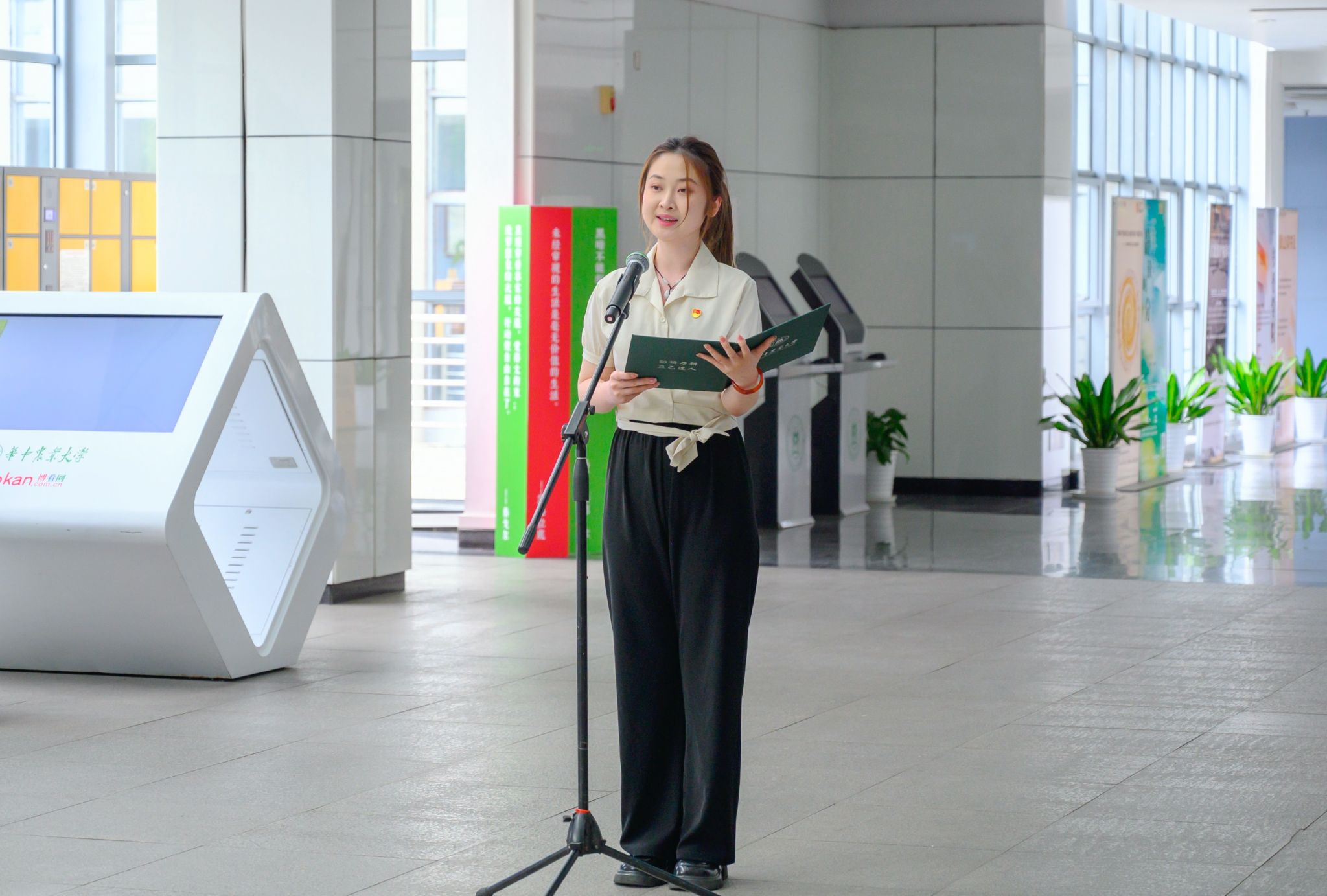 水族科学与技术2201班贾丽君同学作为阅读之星代表分享了自己在书页间追寻力量、在文字中拥抱成长的故事。她谈道,在情绪低谷时,在困顿于病床时,是阅读赋予她直面困境的勇气,也让她学会将磨难转化为成长的养分。她希望与广大师生一道,继续以书为翼,在阅读中积蓄力量,在分享中传递温暖,在书页间找到破茧成蝶的密码。