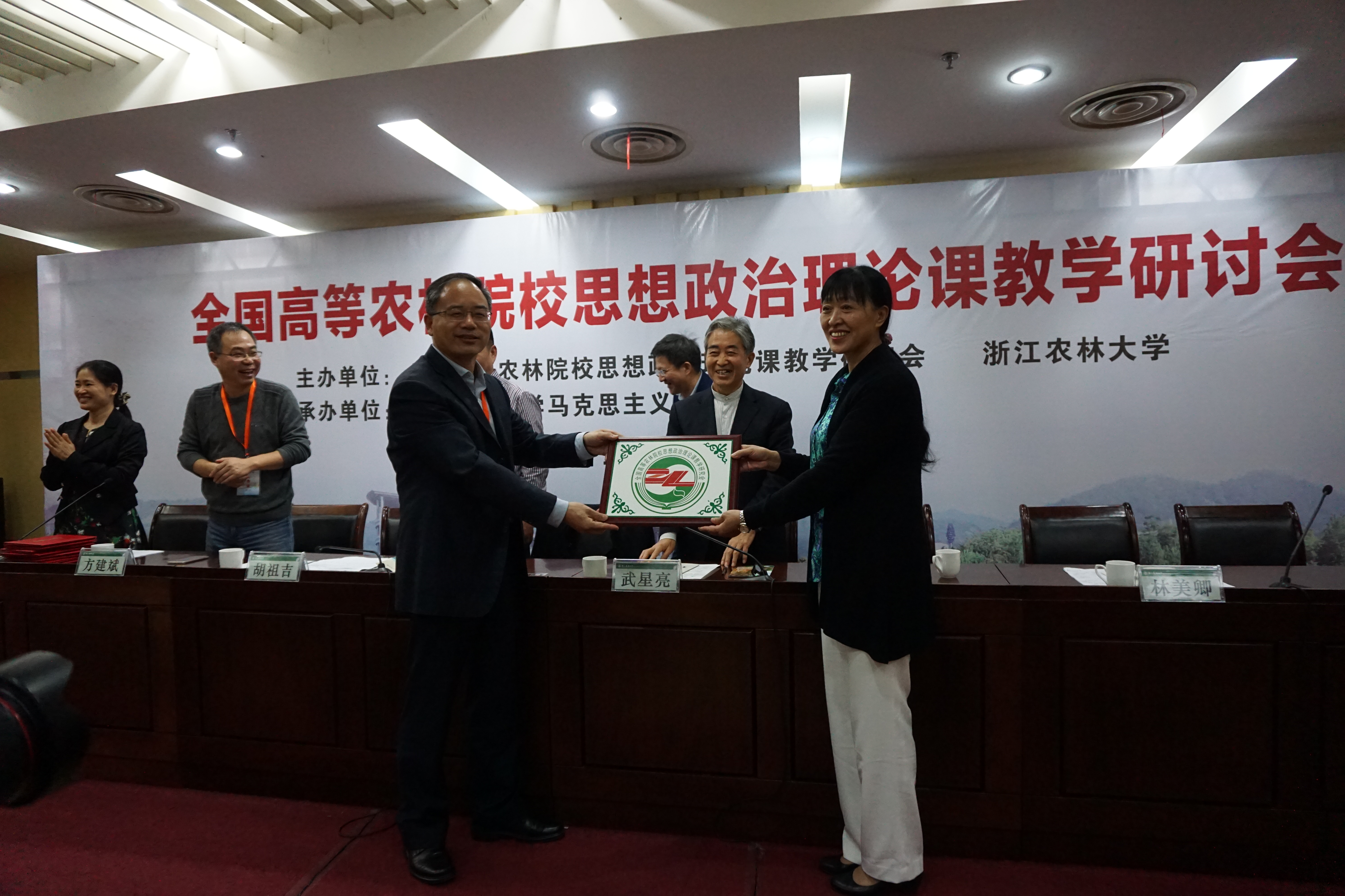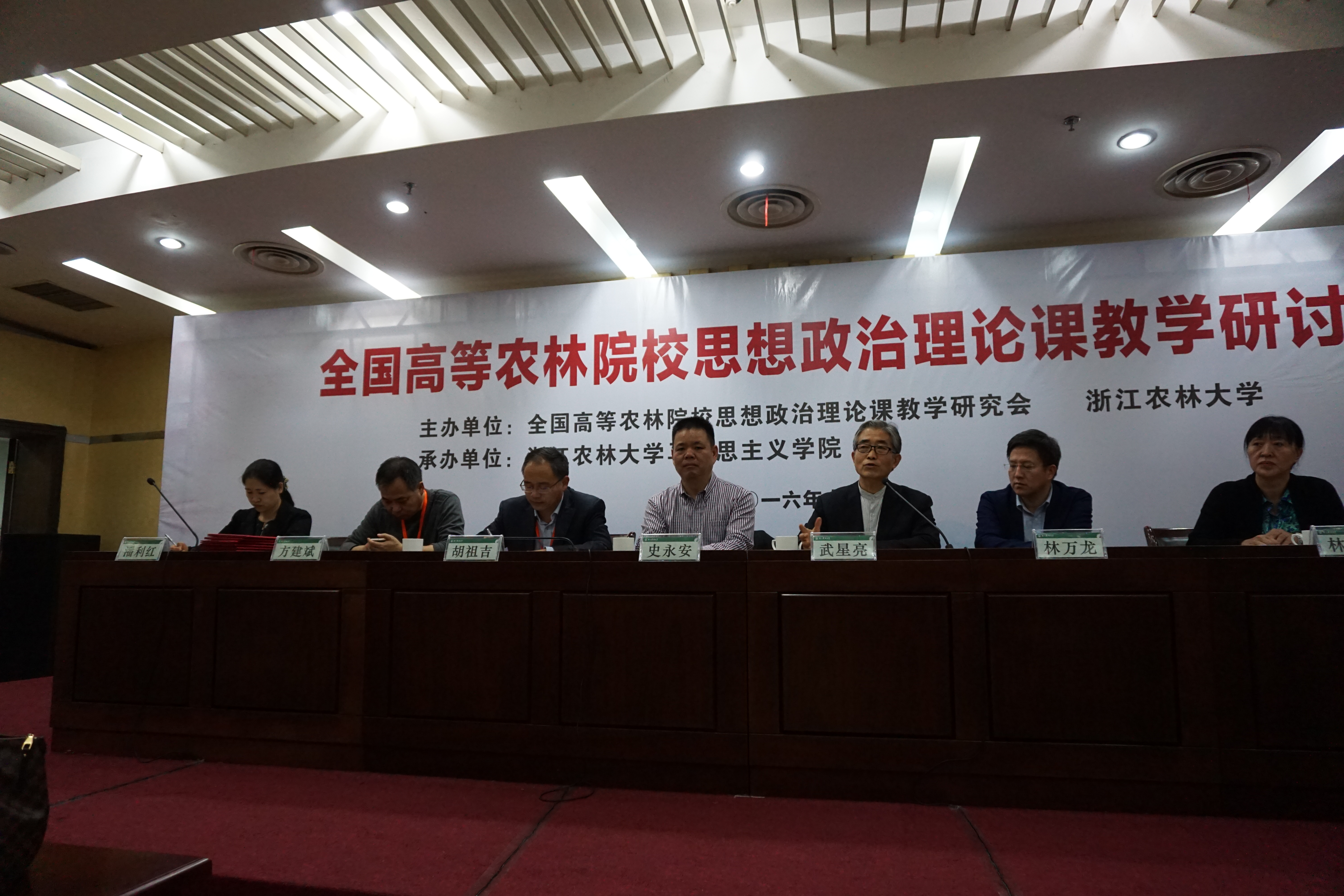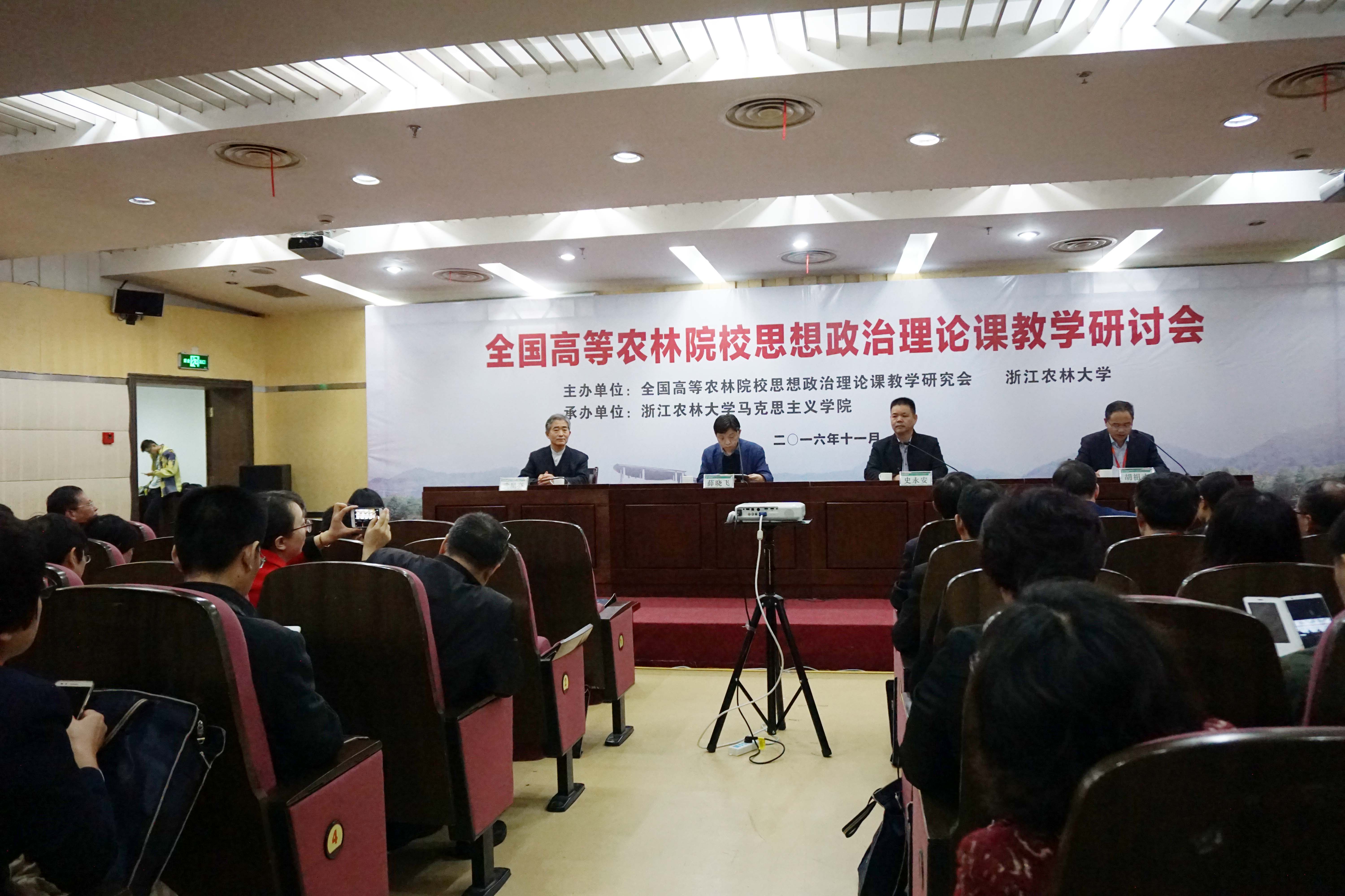 全国高等农林院校思想政治理论课教学研究会会长武星亮、浙江省教育厅宣教处处长薛晓飞、浙江农林大学党委副书记史永安,以及来自全国近30所高等农林院校从事思想政治理论课教学研究的专家学者共100余人汇聚一堂,共商思想政治理论课教学改革创新。我院学术委员会主任吴春梅教授、副书记吴珊、副院长李恺副教授、思想政治教育系主任李厚刚副教授等出席了此次会议。
