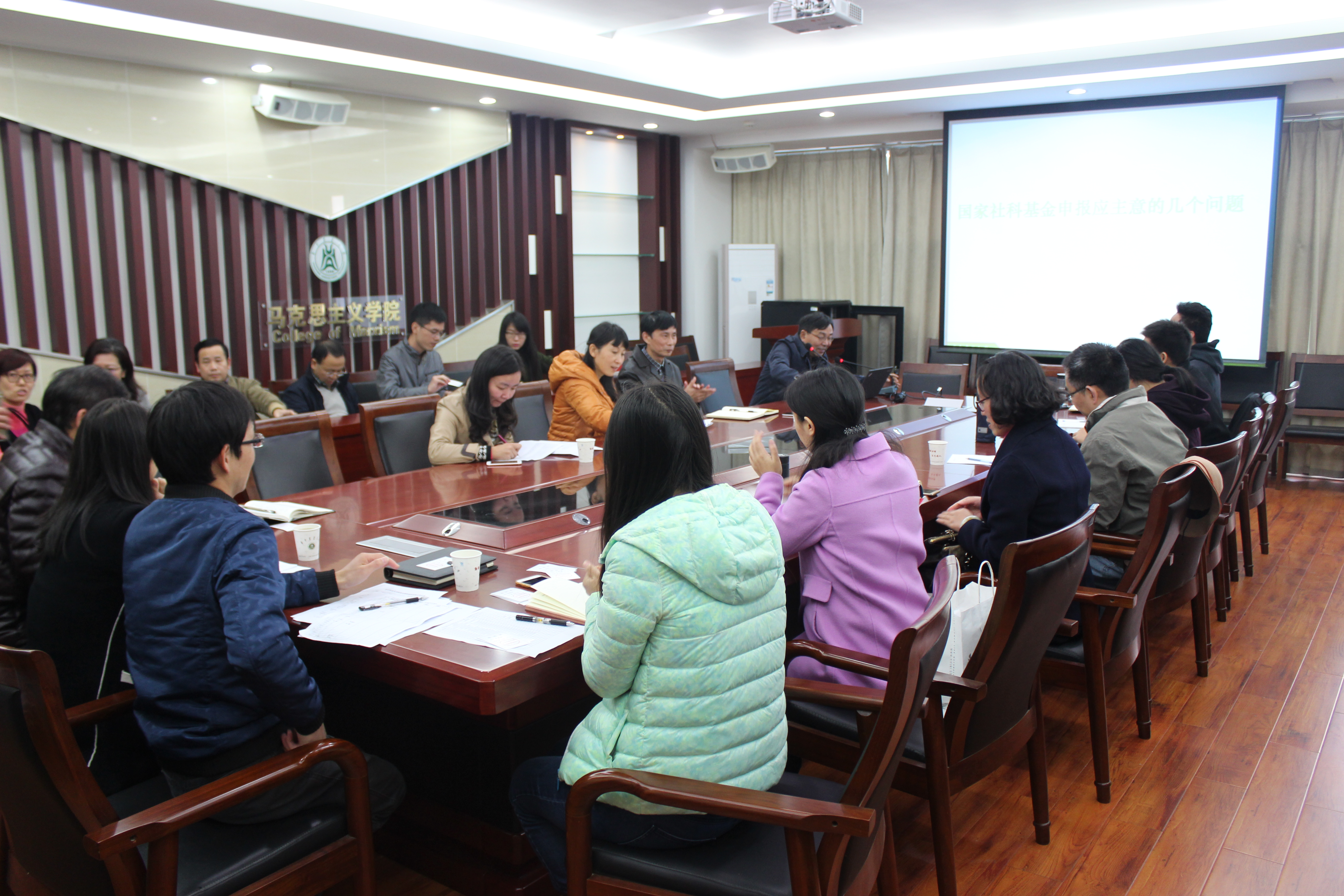 钟涨宝教授以国家社会科学基金项目申报为例为大家进行讲解。他首先强调了申报社会科学研究项目选题的重要性,认为选题要注重其学术价值或是应用价值。他接着指出,文献回顾是基础。他根据自己的经验总结说,评审专家从申报者的文献回顾就可以看出申报者的学术基础与学术功底,包括申报者的学术训练程度、对选题的了解程度和归纳与分析能力等。他还针对具体案例分析了文献回顾应注意的几个问题。再次,钟教授指出研究内容是根本,并指出了研究内容要注意的几个问题,包括研究内容的描述不能是结论式的、研究内容描述的几个方面应有内在逻辑等。最后,他提出研究基础是前提,认为已有的研究成果要表达清楚,最好不要用文字叙述,而是用列表式,尤其注意的是不能作假。