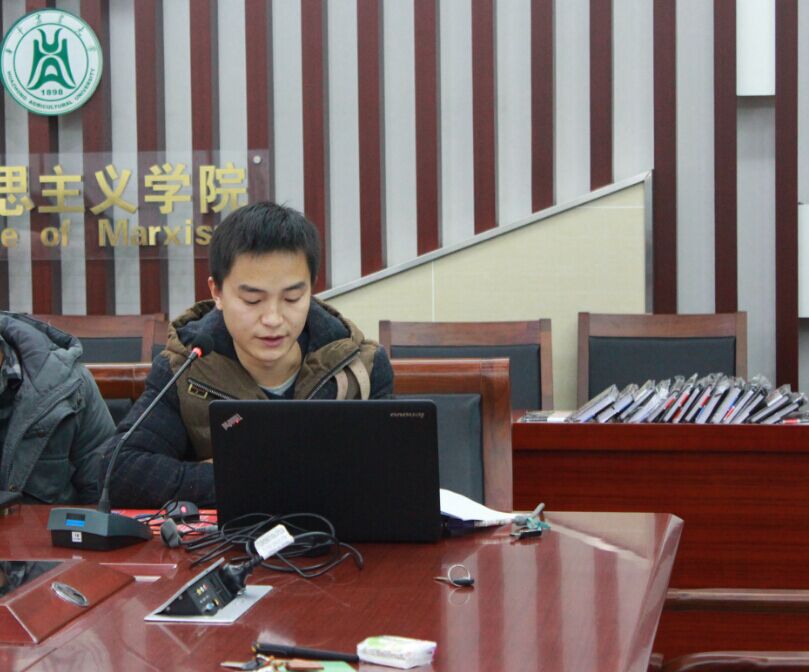 2015年12月28日晚上7点,由共青团华中农业大学研究生工作委员会主办,9428cn太阳集团古天乐研究生科学技术协会承办的第十三、十四期“学术晚茶”立项项目报告会在马克思主义学院会议室人文楼M327举行,“学术晚茶”项目负责人胡勋峰、李虹韦和高旭三位同学作报告,20余名同学参加了报告会。此次学术晚茶活动由我院院长助理梁伟军老师主持。