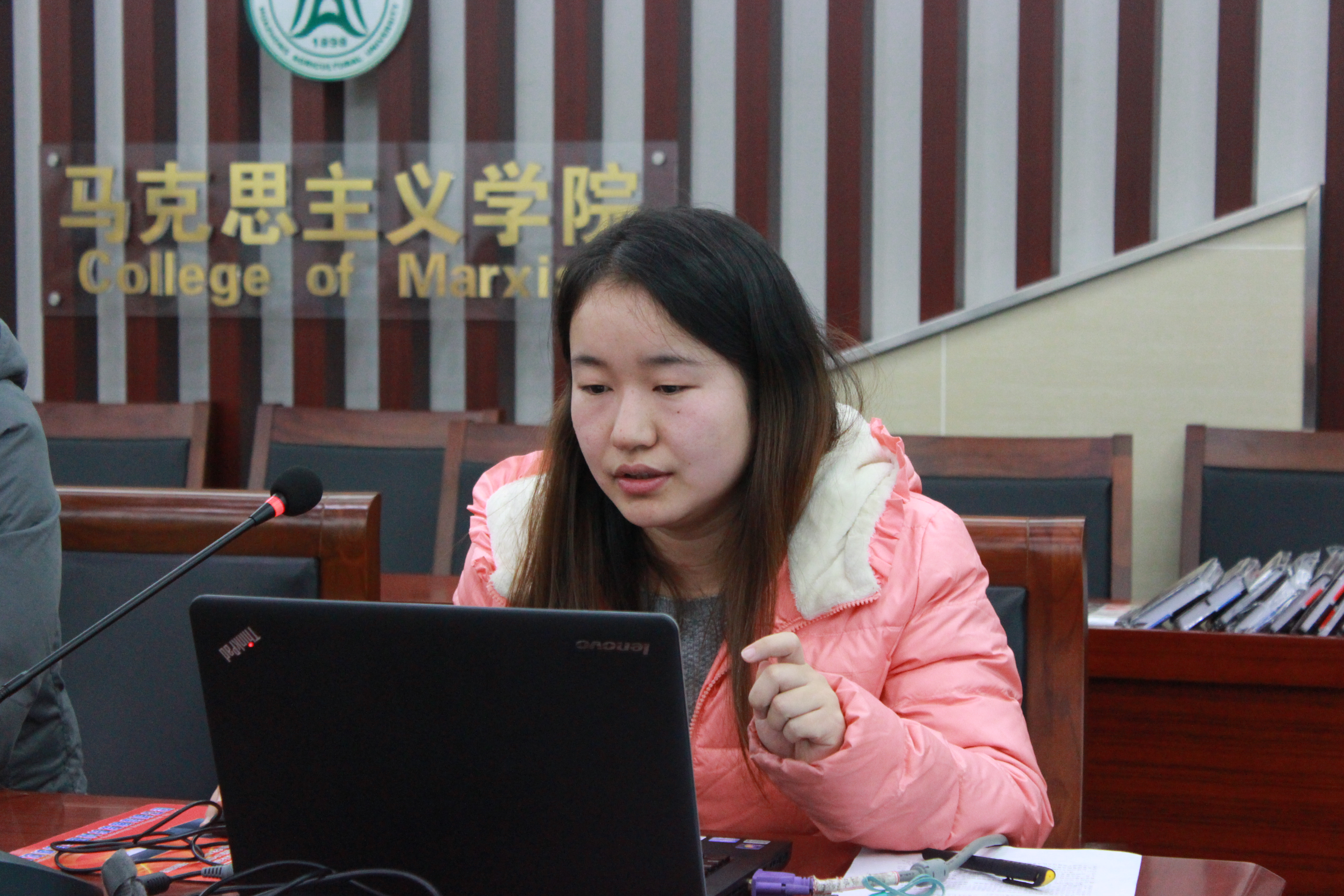 高旭同学以《大学生心理健康素养研究》为题,对我国大学生当前的心理健康素养现状以及精神卫生机构的制度建设进行了深入剖析。高旭同学先从全球视角出发,对当前世界上心理疾病的染病人数及其造成的巨大经济损失进行了细致分析,对我国登记在册的精神病患者现状进行了说明,同时提出我国当前精神卫生机构存在较大缺口,专业医院和专业医护人员紧缺的现状。高旭同学对同学们发出疑问:在国家的综合实力中,国民健康而积极的心理重要吗?如何看待拜物教的现状?哪些因素导致如今的大学生抗挫折能力下降?同学们积极发言,轻松交流,思维的碰撞跃动在冬日的微风胧月之中。