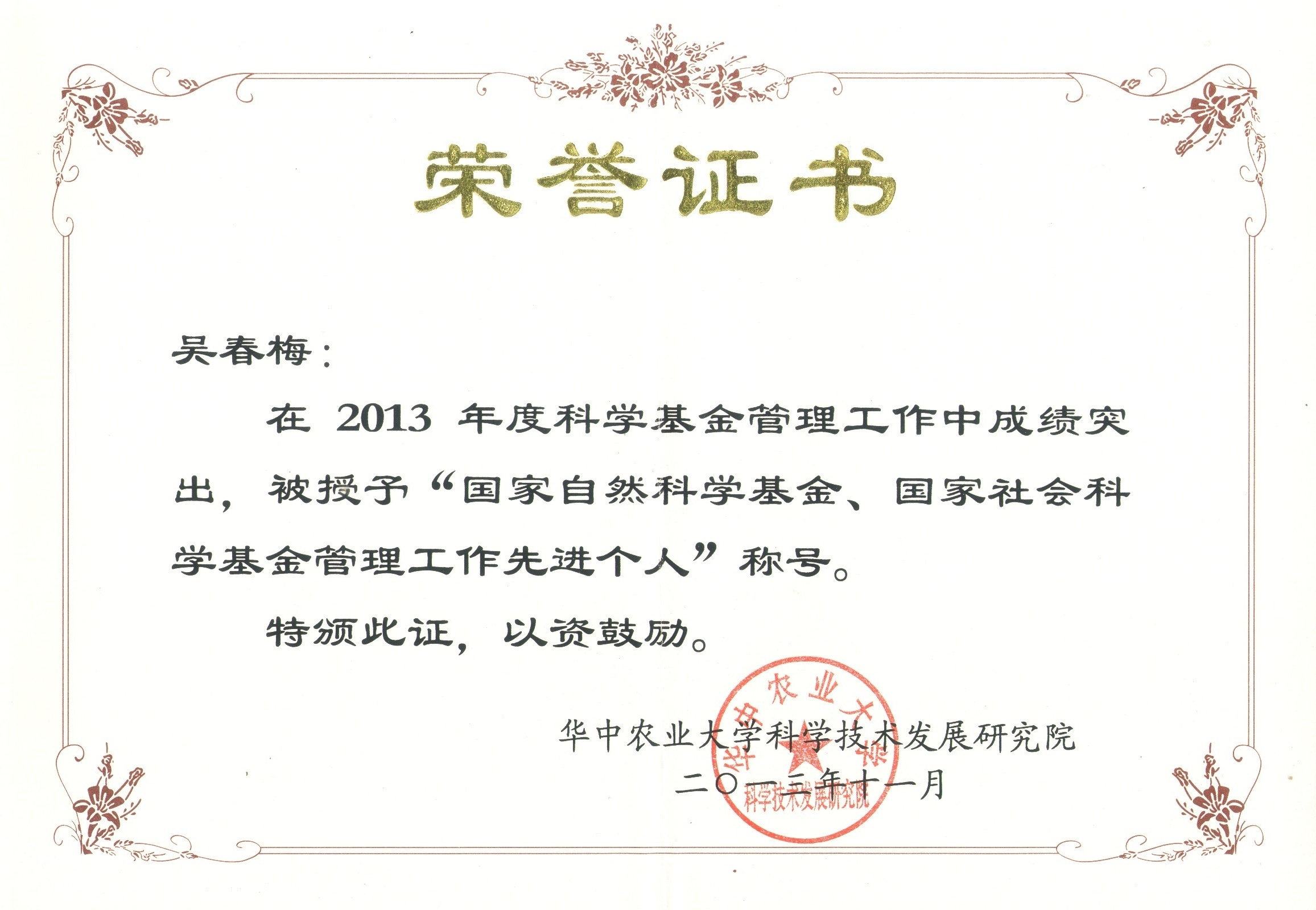 11月7日,学校召开国家自然科学基金、国家社会科学基金2013年度工作总结会暨2014年度工作部署会,会议对2013年度国家自然科学基金、国家社会科学基金工作进行了总结,对2014年度该项工作进行了部署,同时对2013年度科学基金管理工作先进集体和先进个人进行了表彰。从会上获悉,我院因“在2013年度科学基金管理工作中成绩突出,被授予‘国家自然科学基金、国家社会科学基金管理工作先进单位’称号”,同时,我院院长吴春梅教授也因“在2013年度科学基金管理工作中成绩突出,被授予‘国家自然科学基金、国家社会科学基金管理工作先进个人’称号”。吴春梅院长从学院分管领导的角度在会上介绍了我院科学基金的组织管理工作经验。