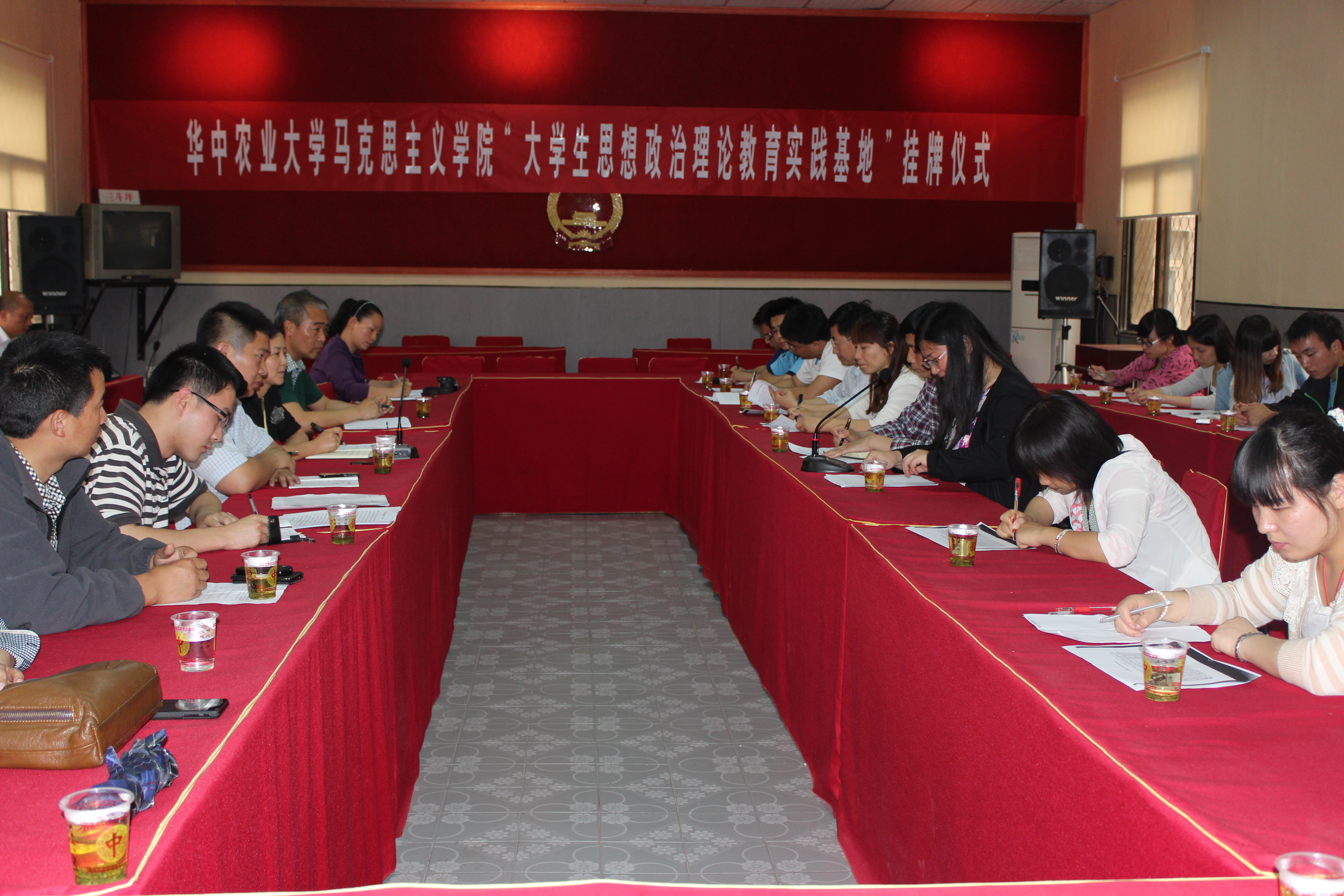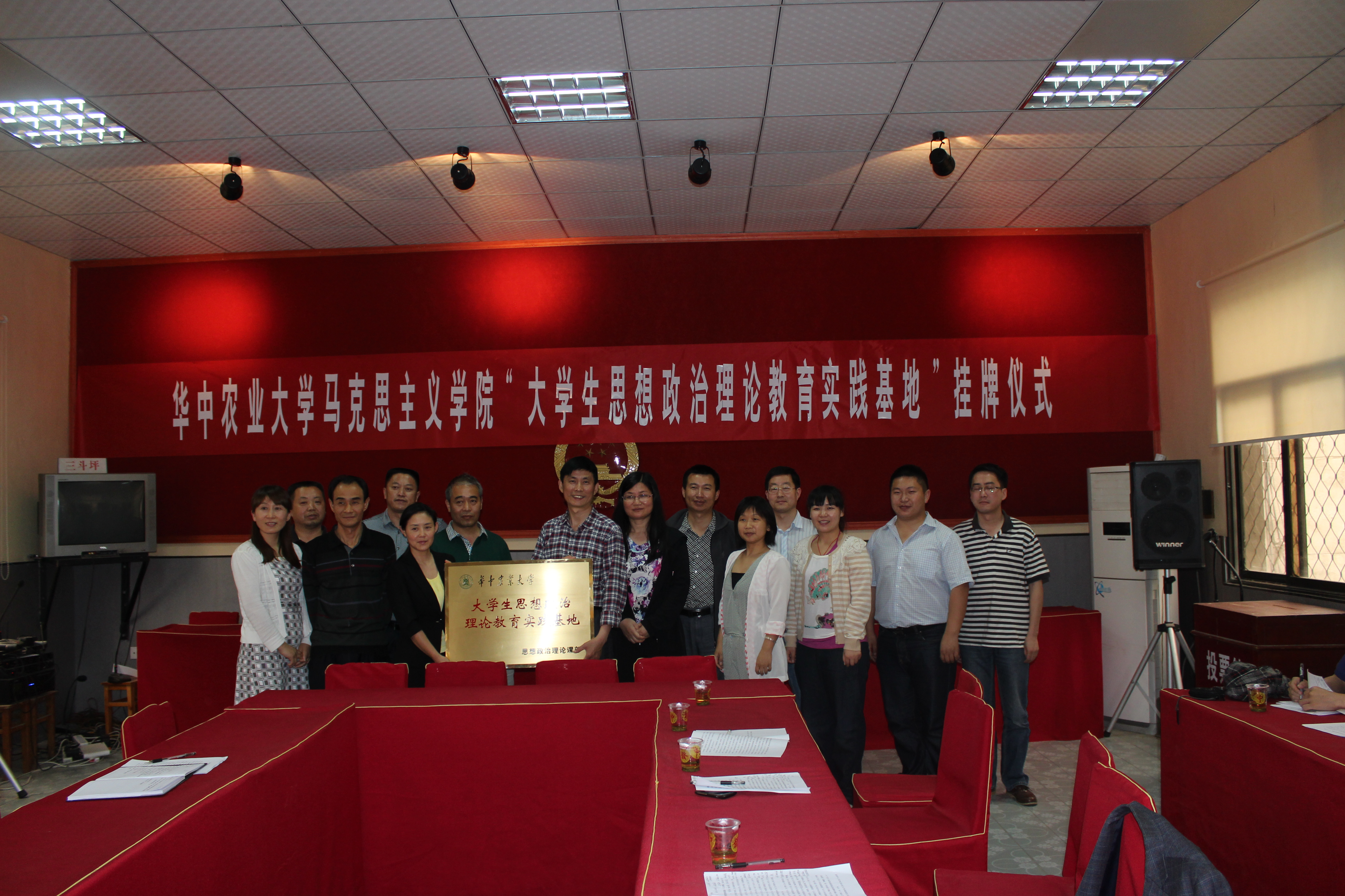 5月17日下午,9428cn太阳集团宜昌市夷陵区三斗坪镇“大学生思想政治理论教育实践基地”挂牌仪式在三斗坪镇政府会议室举行,我院党总支书记王洪波同志和三斗坪镇党委书记望华同志为实践基地揭牌。挂牌仪式由王洪波同志主持,我院院长吴春梅教授和三斗坪镇望华书记先后致辞,三斗坪镇党委副书记王合军、副镇长熊代兵和陈振华等同志,三斗坪镇黄陵庙村党支部书记杨年建、园艺村党支部书记赵建华,我院20名师生一同参加了挂牌仪式。