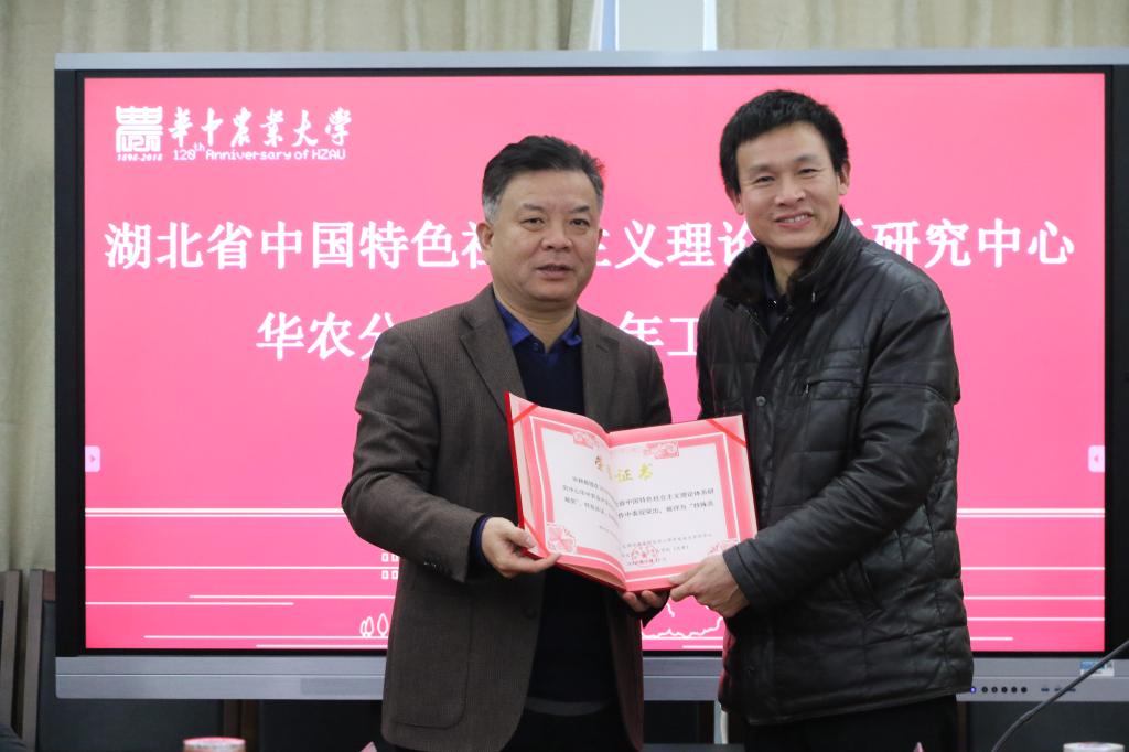 湖北省委宣传部理论处负责人发表重要讲话,对华农分中心2018年开展的工作与取得的成绩进行了高度肯定,强调要充分认识加强中心建设的重要意义。中国特色社会主义理论体系研究中心是学习、宣传、研究和阐释习近平新时代中国特色社会主义思想的重要机构,是促进马克思主义理论学科发展、专家学者发声引导意识形态方向的重要平台。建议华农分中心进一步明确工作重点,汇聚专家学者,加强对外联系,争取更多更好的工作成绩。