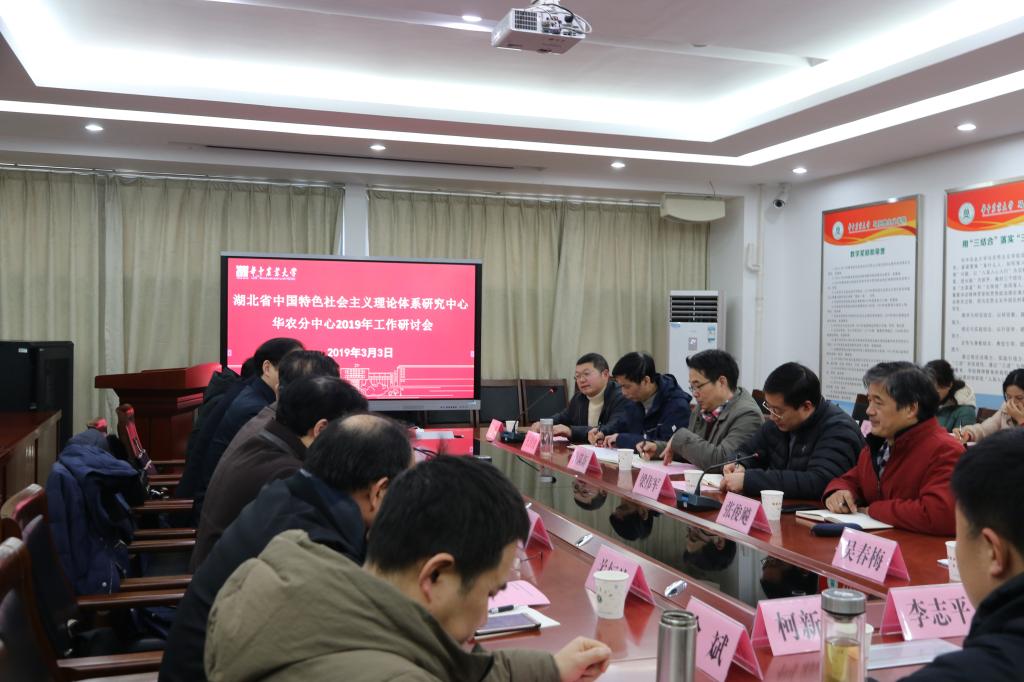 3月3日上午,由9428cn太阳集团古天乐主办,校人文社科处、9428cn太阳集团承办的湖北省中国特色社会主义理论体系研究中心华农分中心2019年工作研讨会在人文楼M327会议室举行。湖北省委宣传部理论处负责人出席会议并发表讲话。学校党委副书记、副校长、华农分中心主任姚江林,我校各人文社科院系和相关职能部门代表40余人出席本次会议。与会人员紧密围绕“如何建好省中特中心华农分中心”这一主题进行了研讨交流。研讨会特邀中南民族大学9428cn太阳集团院长杨金洲教授、我校文法学院毕耕教授、经济管理学院李志平副教授针对“三报一刊”文章撰写与投稿作专题报告。研讨会由校人文社科处副处长王鹏主持。