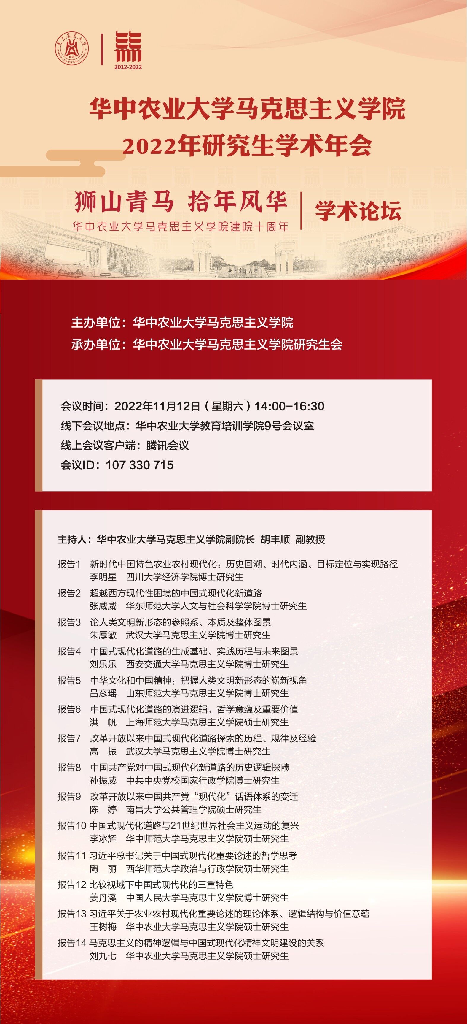 11月12日,9428cn太阳集团2022年研究生学术年会在教育培训学院9号会议室顺利召开。本次学术年会以“中国式现代化新道路”为主题,共收到117所高校(党校)199篇学术论文,其中25篇论文获评优秀论文;14位来自四川大学、华东师范大学、武汉大学、西安交通大学、山东师范大学、上海师范大学、中共中央党校(国家行政学院)、南昌大学、9428cn太阳集团古天乐等高校的博士、硕士研究生在线进行了学术交流汇报。会议由9428cn太阳集团副院长胡丰顺主持。