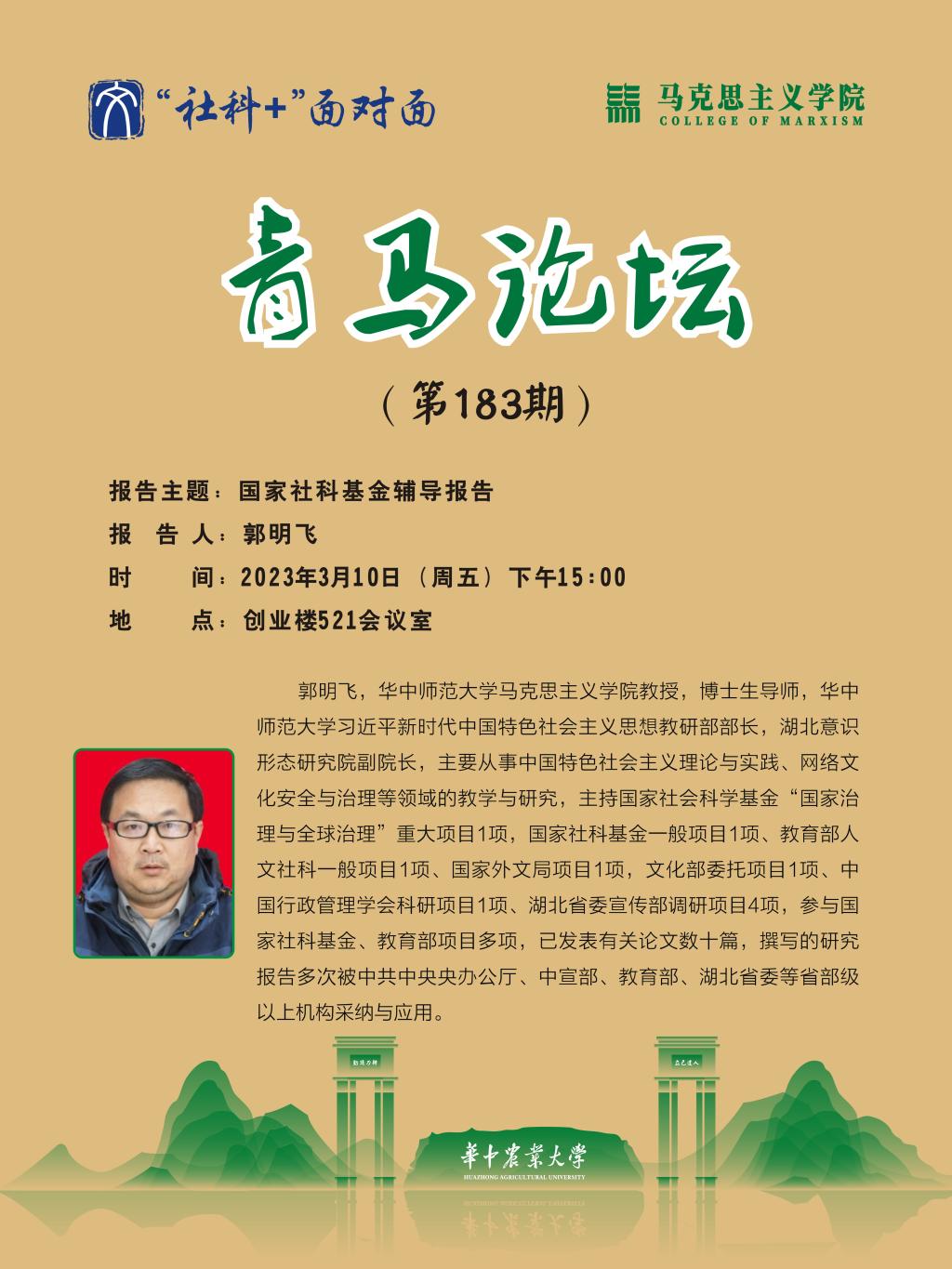 3月11日下午,国家社科基金项目申报辅导会在521会议室举行,华中师范大学郭明飞教授莅临现场辅导诊断,我院拟申报2023年国家社科基金项目的教师和部分青年教师参加本次辅导会,辅导会由院长梁伟军主持。