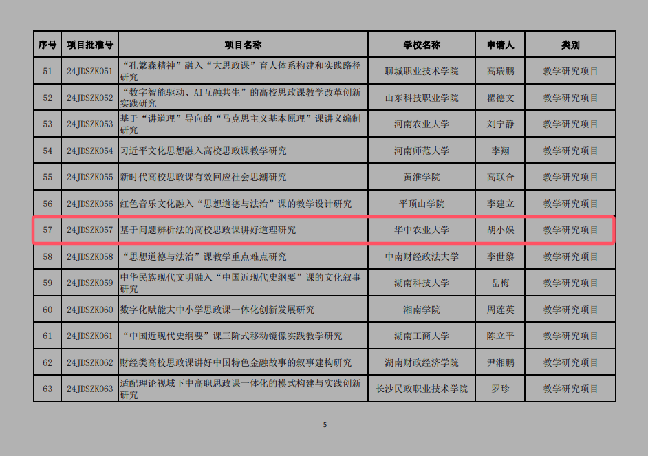 9月1日,教育部网站发布《教育部社科司关于2024年度高校思想政治理论课教师研究专项一般项目立项的通知》。我院胡小娱博士的项目《基于问题辨析法的高校思政课讲好道理研究》成功立项。
