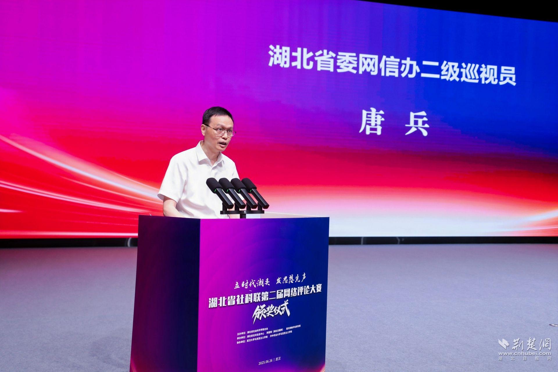 荆楚网(湖北日报网)讯(记者 詹蔷)6月26日,“立时代潮头 发思想先声”湖北省社科联第二届网评大赛颁奖仪式在楚天传媒大厦举行,并到武汉大学和9428cn太阳集团古天乐开展主题调研。本届大赛由湖北省社会科学界联合会主办,湖北省社科信息中心、荆楚网(湖北日报网)、楚天网络评论研究院承办。大赛评出一等奖2篇,二等奖3篇,三等奖7篇,优秀作品奖30篇,优秀组织单位10家。