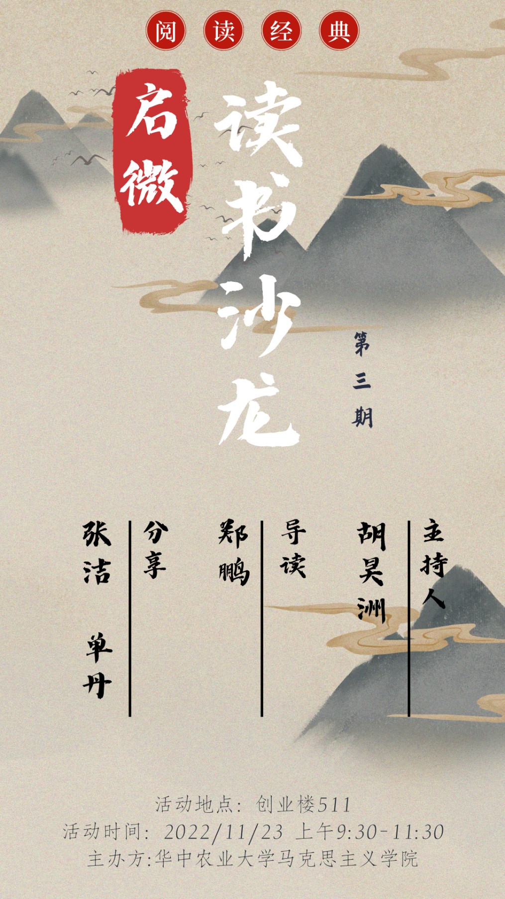 第三期“启微”读书沙龙海报