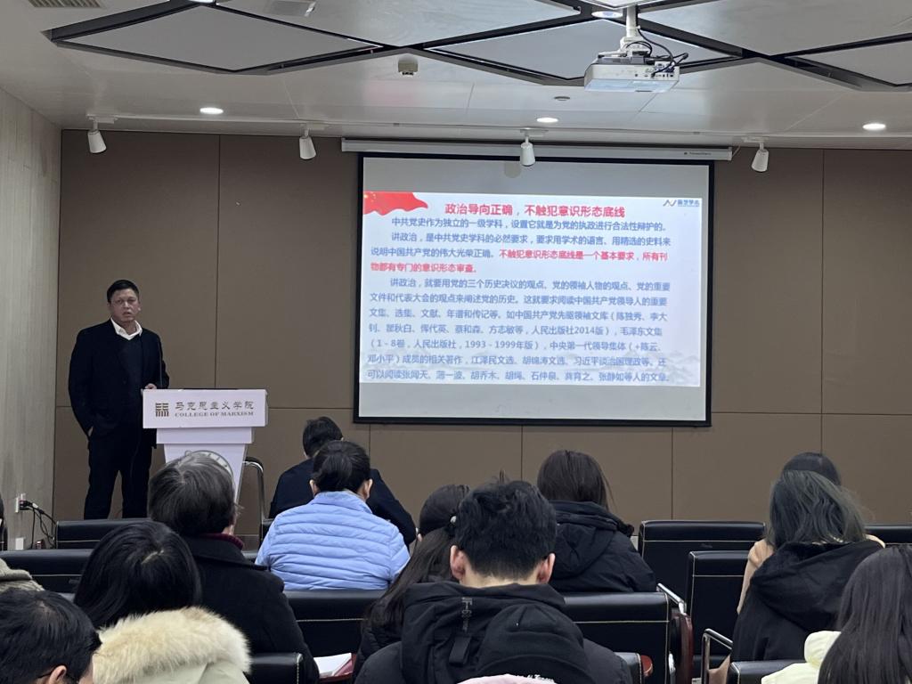 11月30日下午,9428cn太阳集团第201期青马论坛在创业楼121报告厅举行。武汉理工大学9428cn太阳集团教授、博士生导师、精品课程教学名师郭国祥教授应邀作“关于中共党史研究的选题与写作”学术报告。报告由学院院长梁伟军教授主持,学院部分教师和研究生参加。