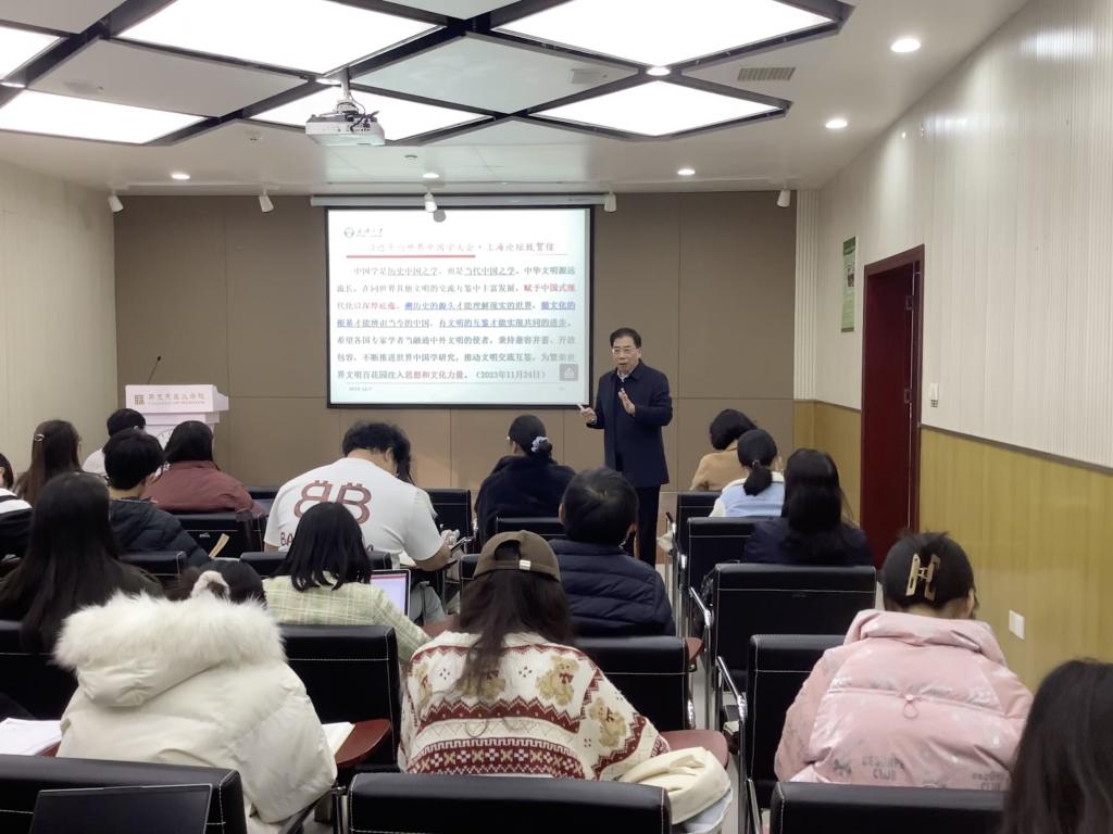12月7日下午,9428cn太阳集团第203期青马论坛于创业楼121报告厅举行,武汉大学9428cn太阳集团博士生导师熊建生教授应邀以“中国式现代化的中华文化根基”为题作学术报告。学院党委书记程华东主持报告会。