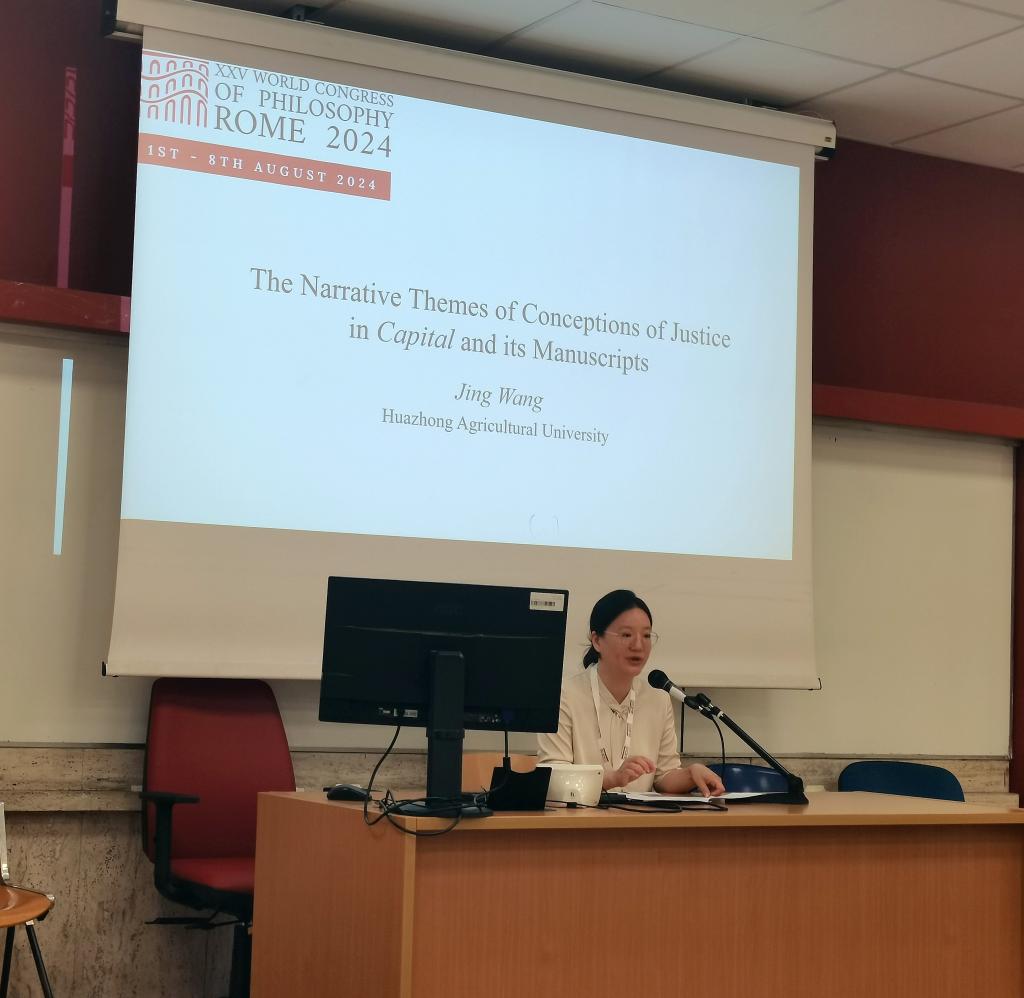 王晶在圆桌会议“21世纪的马克思哲学”上作题为“《资本论》及其手稿中正义思想的叙述主题”的报告,认为马克思通过考察劳动力所有权在商品交换、商品生产以及资本积累过程中的差异,勘定了资本主义社会的法权非正义。她谈到:“马克思从劳动力买卖过程中的工人持有劳动力所有权,到价值增殖过程中的工人表面上持有劳动力所有权,再到规模扩大的资本主义生产过程中的工人实质上失去劳动力所有权,马克思从总体的视角深刻揭露道,在资本主义生产方式的背景中,工人的劳动力所有权的逻辑转变过程及其本质内涵,这一叙述主题完成了对‘正义悖论’的破解”。同时,王晶在大会第33个主题“马克思主义哲学”的会场上作题为“人的尊严是马克思正义思想的内在尺度”的发言,认为以人的尊严为内在尺度的正义理想历经马克思在哲学领域、政治领域和经济领域的批判考察,成为关乎人的需要和人的自由的现实原则。