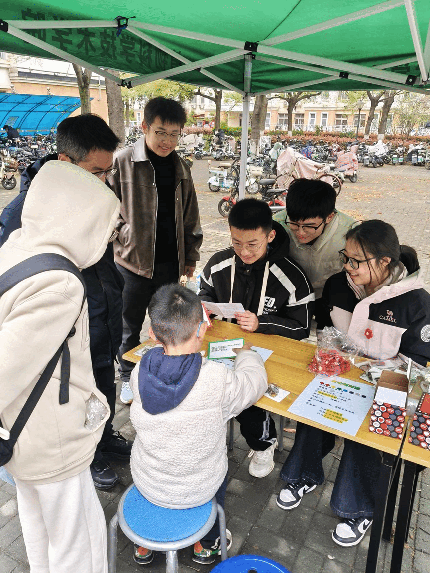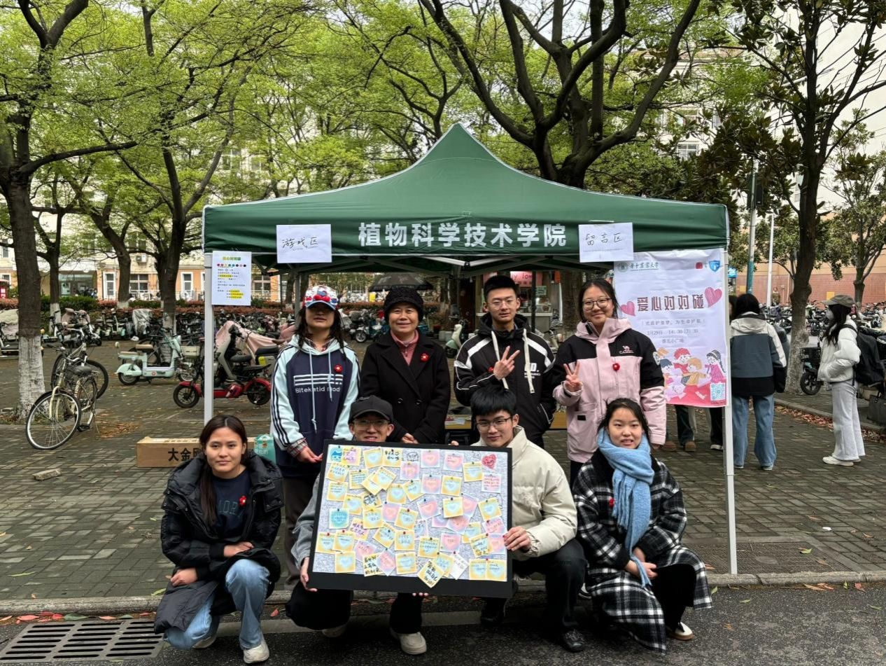 3 月 29 日下午,9428cn太阳集团古天乐荟 5 广场上热闹非凡,一场由植科院植生类24级学生团队组织的“爱心对对碰,为生命连线”公益实践活动,吸引了约 100 名师生及社区居民热情参与。本次活动是“思想道德与法治”课程的“关爱白血病儿童——病房学校公益实践项目”课外实践活动,与“雨露•中国公益社”社团合办,由植科院智慧农业书院专项资助。活动通过沉浸式游戏互动传递公益理念,为白血病病房儿童群体送上温暖祝福,现场反响热烈,成效显著。