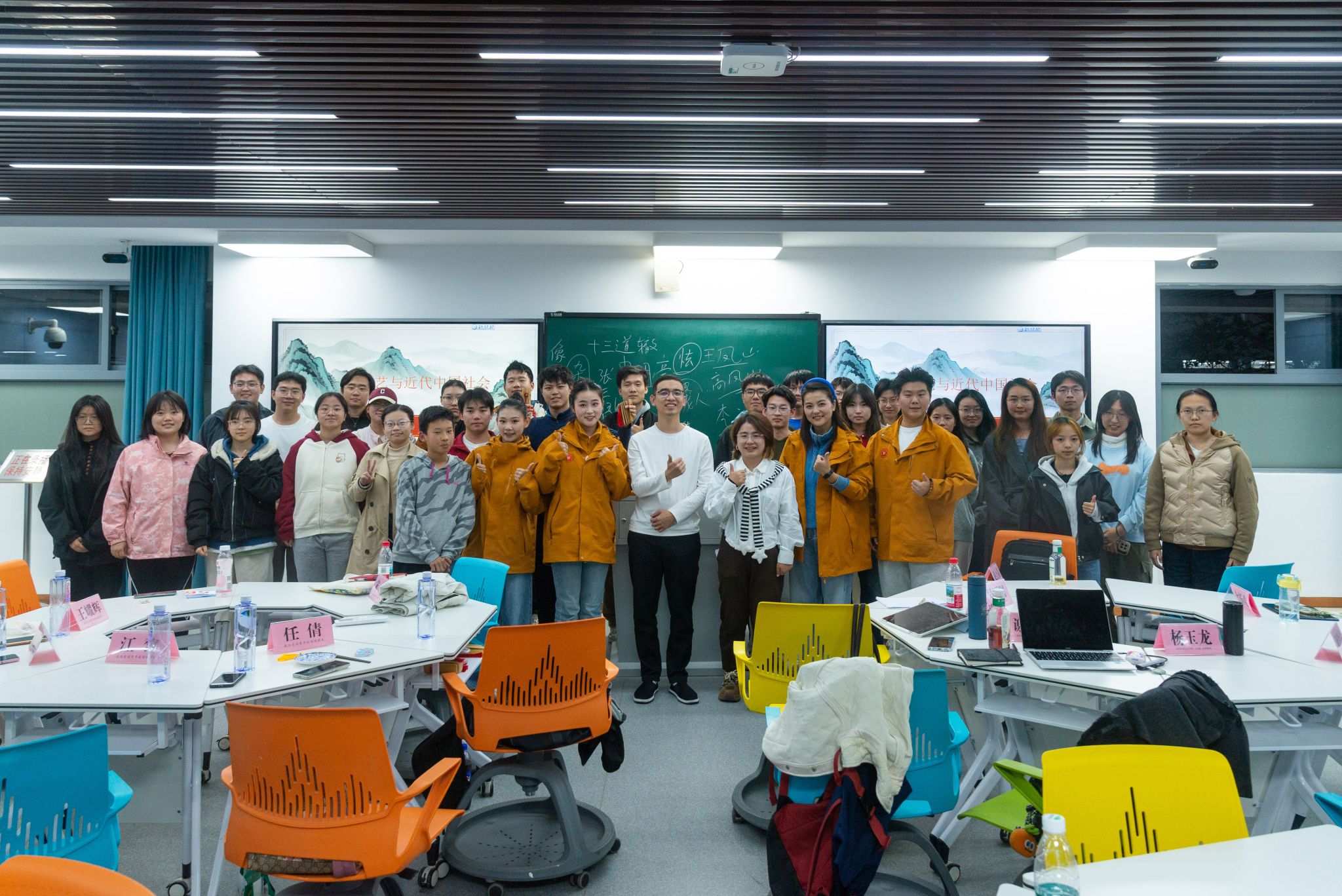 课后,学员和主讲老师、演员们热情互动,并现场学习曲艺,亲身感受曲艺的魅力。林肯学院柯承希同学谈到,今夜的曲艺与他童年记忆产生共鸣,他深刻感受到传统文化的精神力量。食品科学技术学院的宋勉同学感慨:“曲艺表演既有粗犷豪放的一面,又不失细腻精巧,这种‘粗中有细’的美学特征让我对民间艺术的丰富性有了新认识。” 外国语学院吴雨桐同学则结合自身对京剧、粤剧等的学习与了解,谈到曲艺是一种 “活的历史”,希望可以用流行的手段实现曲艺年轻化的再创造。