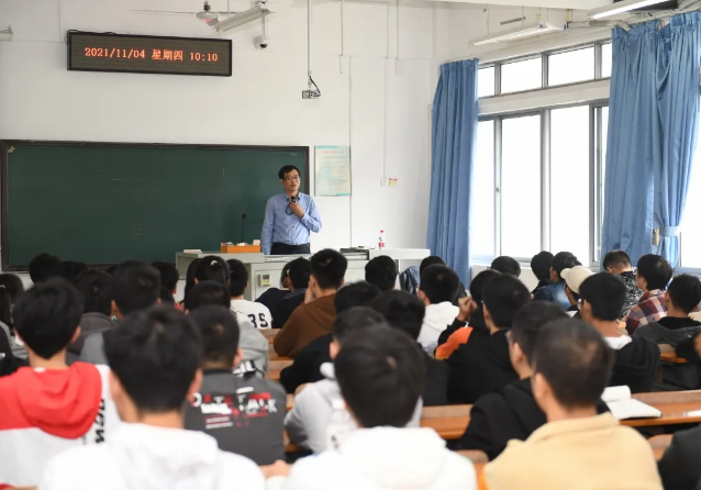 11月4日上午,在三教C302教室,校党委常委、副校长郭刚奇走进工学院机械类新生课堂,为同学们讲授“谱写乡村全面振兴新篇章”专题思政课。