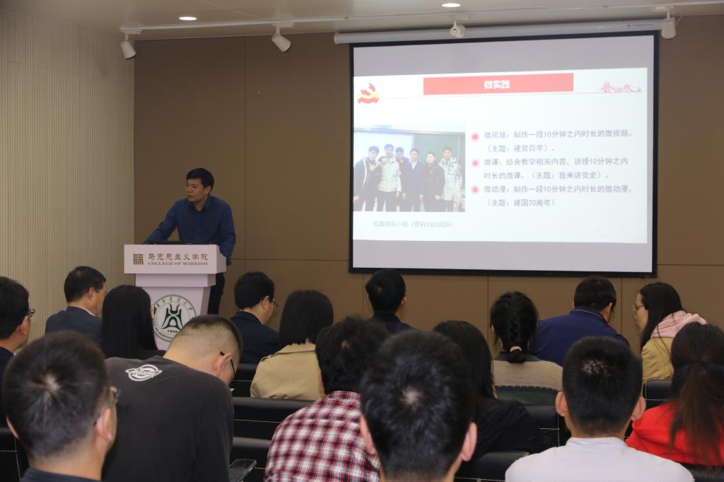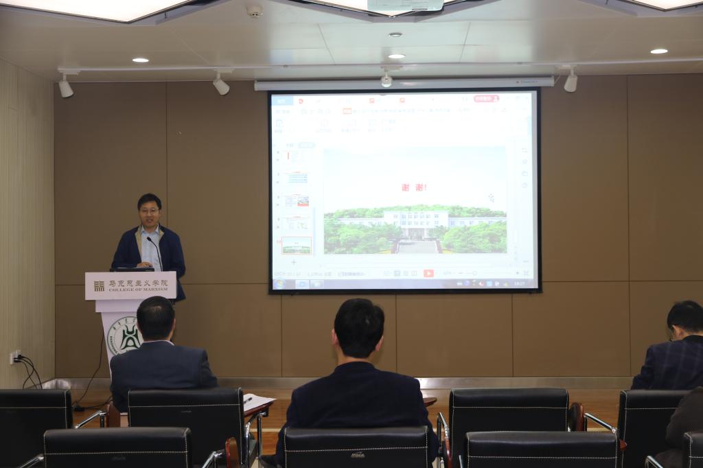 在2021年本科思政课改革创优项目汇报中,吴德凯老师提出要把握学生兴趣特点,及时全面了解学生反馈,抓准学生认可的教学点,提高教学质量。雷玉明老师创新使用“利用‘现场+’和‘自媒体+’”微视频的教学方式,打破课堂教学的时空局限,营造场景代入式教学,使师生共同身临其境、亲身感受,增强思政课的“三性一力”。郑鹏老师从增加亲和力与学理性、提升获得感与成就感的基本思路出发,努力打造学生喜爱的“金课”,实现“教学相长、研教融通”。陈贵华老师进行“中国近现代史纲要”课程改革汇报,提出通过聘请名师指导、更新教学理念、优化教学方法等举措来提升思政课教师的授课水平。夯实教学基本功,将理论讲透彻,提升学生自主学习的积极性。刘双老师在汇报中提出,形势与政策系在“持续抓好集体备课、做好‘马愿师道’示范课、形成专题讨论式教学模式、制定精准考核方案、抓好学习练内功”方向发力,并汇报了该课程已经取得的良好效果——教学科研相融合、学生教师双提升。