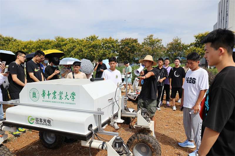 在校内的智慧农业基地,植物科学技术学院杨万能教授,带领同学们体验高通量表型组平台工作过程,实地体验表型机器人、无人机、数字化考种机、前沿表型平台……一系列操作让学生直呼“大开眼界”。