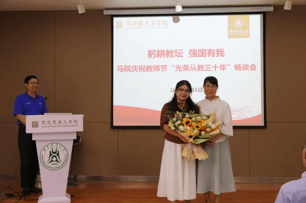 青年教师给同书琴老师送上鲜花(单丹 摄)