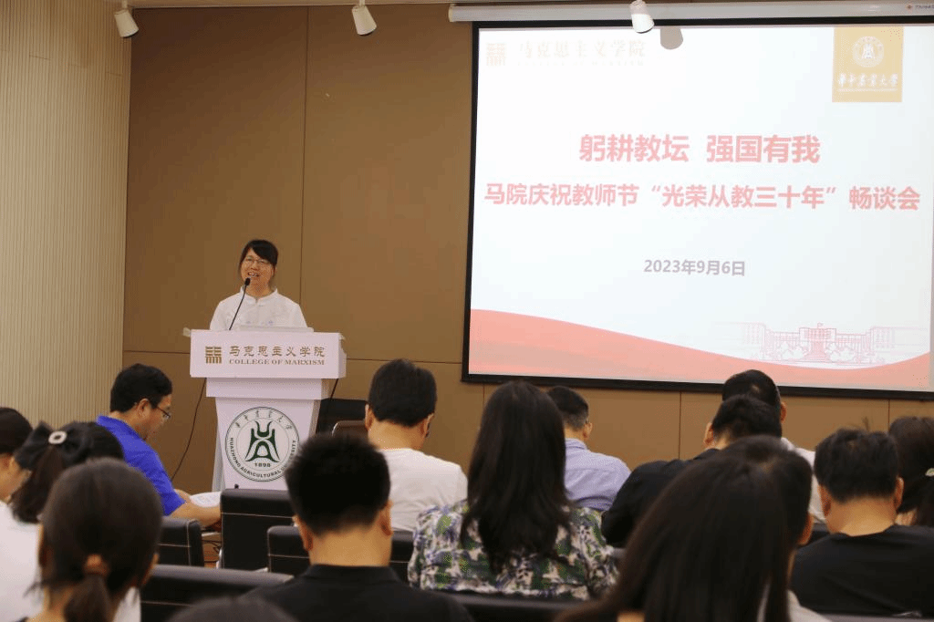 活动伊始,全体教师重温了习近平总书记在学校思想政治理论课教师座谈会上的讲话精神,进一步强化思政课教师肩负的使命与责任。学院为从教三十年教师同书琴颁发纪念奖牌,向同老师三十年来对教育事业的坚守和付出致敬。梁伟军院长代表学院向全体教师表示诚挚的节日问候和衷心的感谢。他谈到,作为思政课教师,要勇担使命责任,保持身心健康,潜心课程育人,投入科学研究,热心社会服务,做好立德修身。他希望广大教师要“以功成不必在我”的情怀与“功成必定有我”的担当,继续为学院建设、学校发展、民族复兴与强国建设贡献力量。