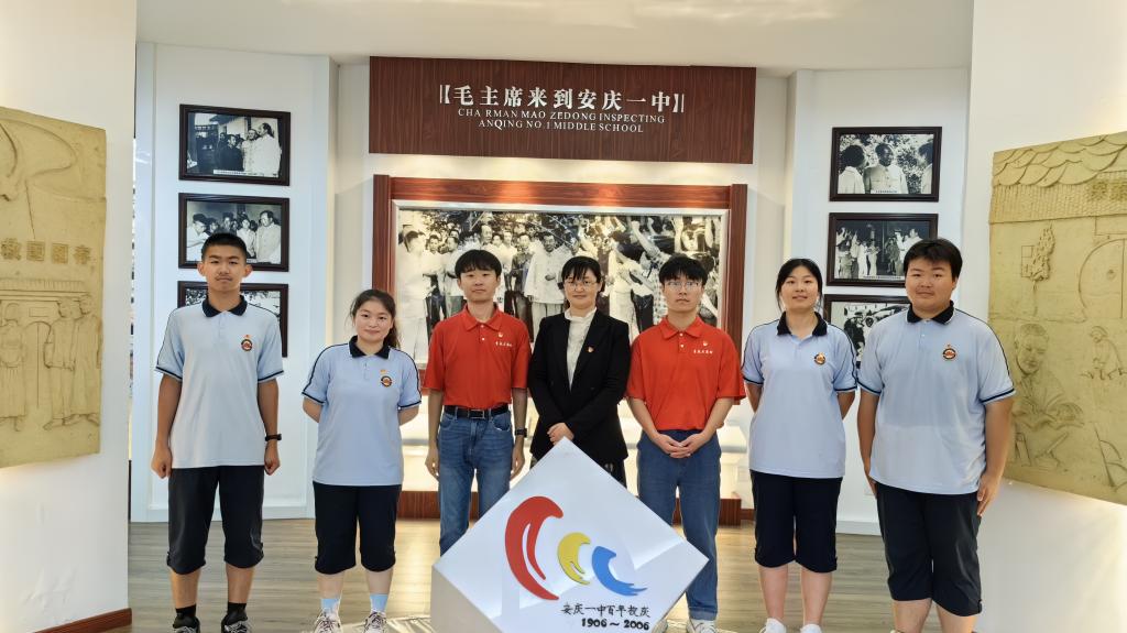(2023年6月 安庆一中校史馆 我和学生与“延乔班”学子合影)