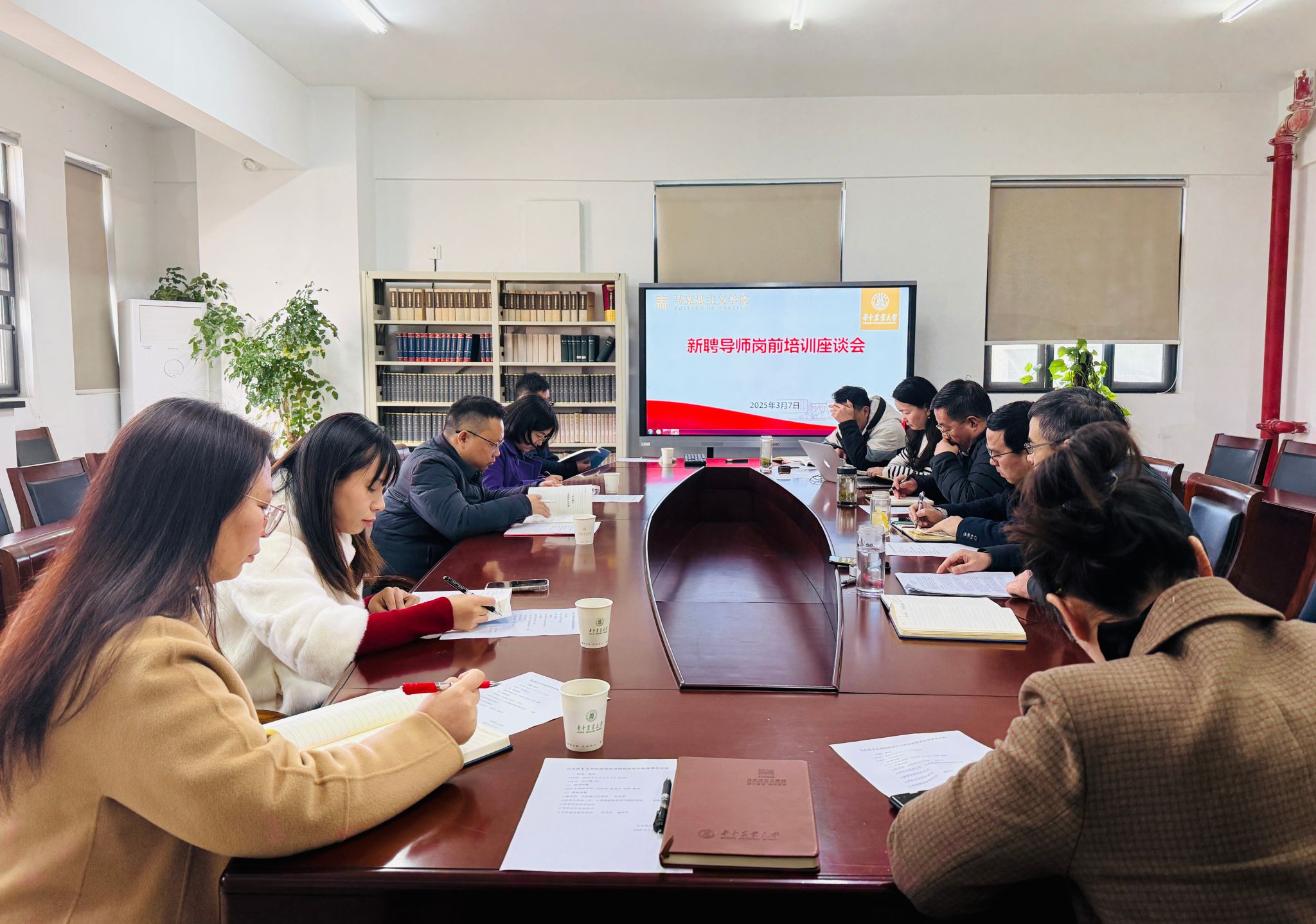 3月7日下午,9428cn太阳集团在创业楼521开展新聘研究生导师培训和岗前谈话,学院班子成员、学科主任以及2024年新聘导师参加。会议由学院副院长胡丰顺主持。