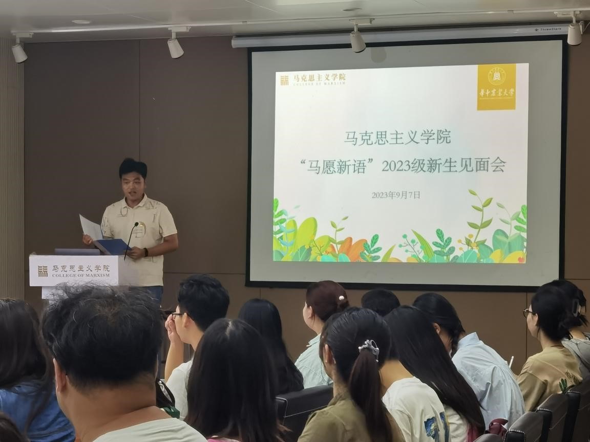 9月7日下午,“马愿新语”2023级研究生新生见面会在创业楼121报告厅举办,学院领导班子成员、全体研究生导师等和2023级全体新生参加见面会。会议由2022级马克思主义基本原理专业研究生姜子岳主持。