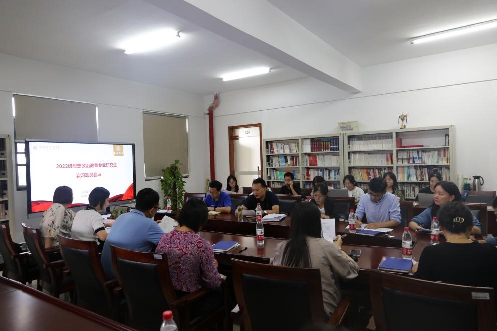 为做好2022级思政专业实习工作,9428cn太阳集团思想政治教育系于9月13日下午在创业楼511会议室召开2022级思想政治教育专业研究生实习动员大会,研究生院陈曦老师、学院领导班子成员、实习工作小组成员、思政系导师及2022级研究生等参会。会议由实习工作小组组长李厚刚老师主持。