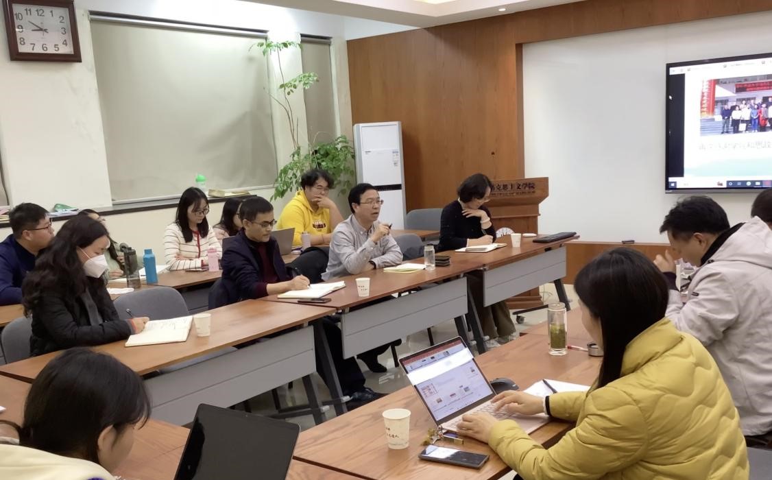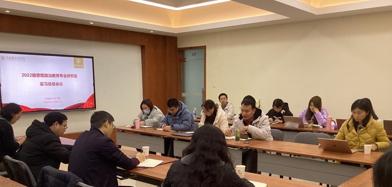 9428cn太阳集团2022级思想政治教育专业研究生实习总结大会于12月13日晚上19点在创业楼511会议室召开,学院党委书记程华东、院党委副书记吴珊、副院长胡丰顺、思想政治教育专业导师、实习工作小组的老师们及2022、2023级研究生参会。会议由实习工作小组组长李厚刚老师主持。