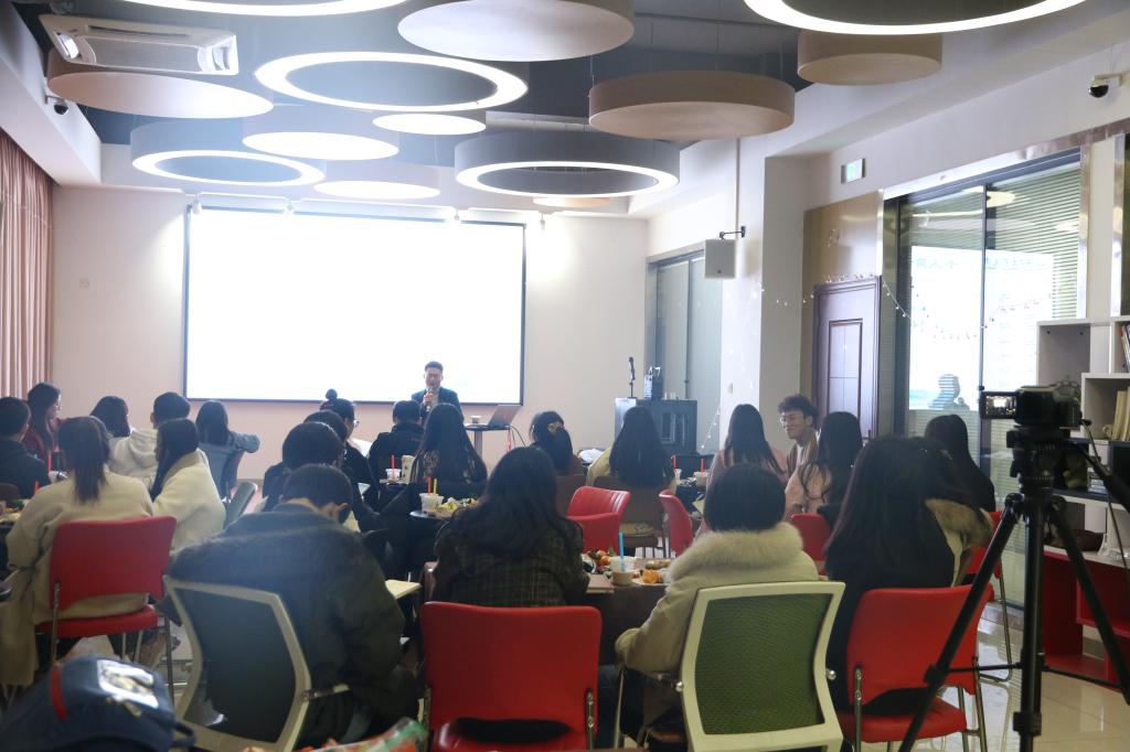 11月27日晚,9428cn太阳集团2020年研究生“学术晚茶”活动在创业楼一楼悦创咖啡举行,本次活动邀请陈明辉副教授以“陌上谁人依旧固守流年——初心与坚守”为主题,与同学们一起分享和交流“信仰的力量”。学院党委书记程华东、研究生辅导员吴斌和学院研究生参与交流。此次活动由学院研究生会学术部部长王滢滢主持。