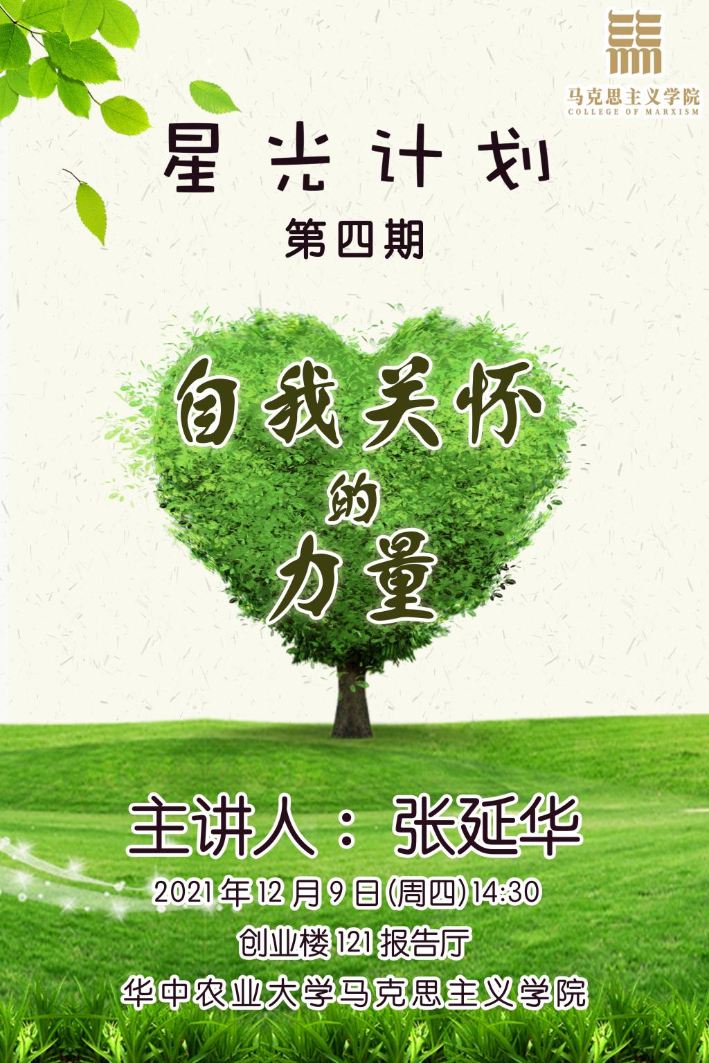 12月9日下午,9428cn太阳集团研究生能力素质提升“星光计划”第四期“自我关怀的力量”专题讲座在创业楼121报告厅举行,学院研究生参加了本次活动。本次活动邀请大学生心理健康教育中心主任张延华老师主讲,学院党委副书记、副院长吴珊主持。