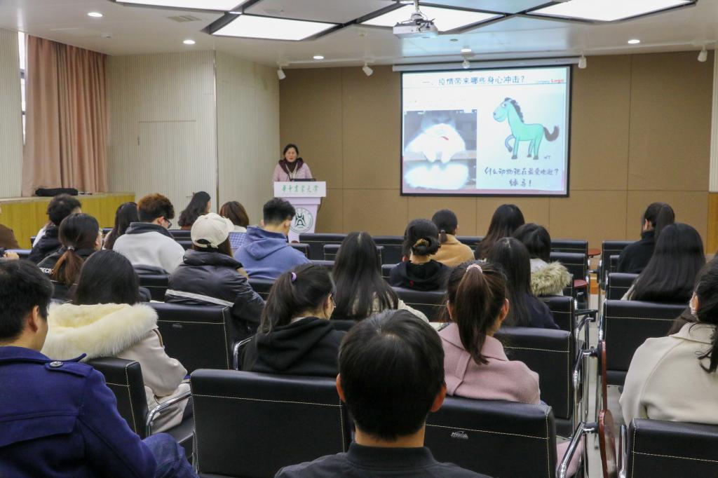 张延华老师以疫情对人们身心健康的影响和冲击为切入点,针对当今社会快速转型背景下“全民焦虑”等现实问题,强调了自我关怀对于帮助大学生群体减轻生活压力和选择健康生活方式的重要性。张老师通过生动丰富的案例,多角度重点讲授了什么才是真正的自我关怀。她提出,自我关怀是人们采取适合的方式来促成自身健康和幸福的行动。最后,张老师向大家介绍了提高自我关怀能力的方法,并围绕如何缓解焦虑提出了针对性建议。