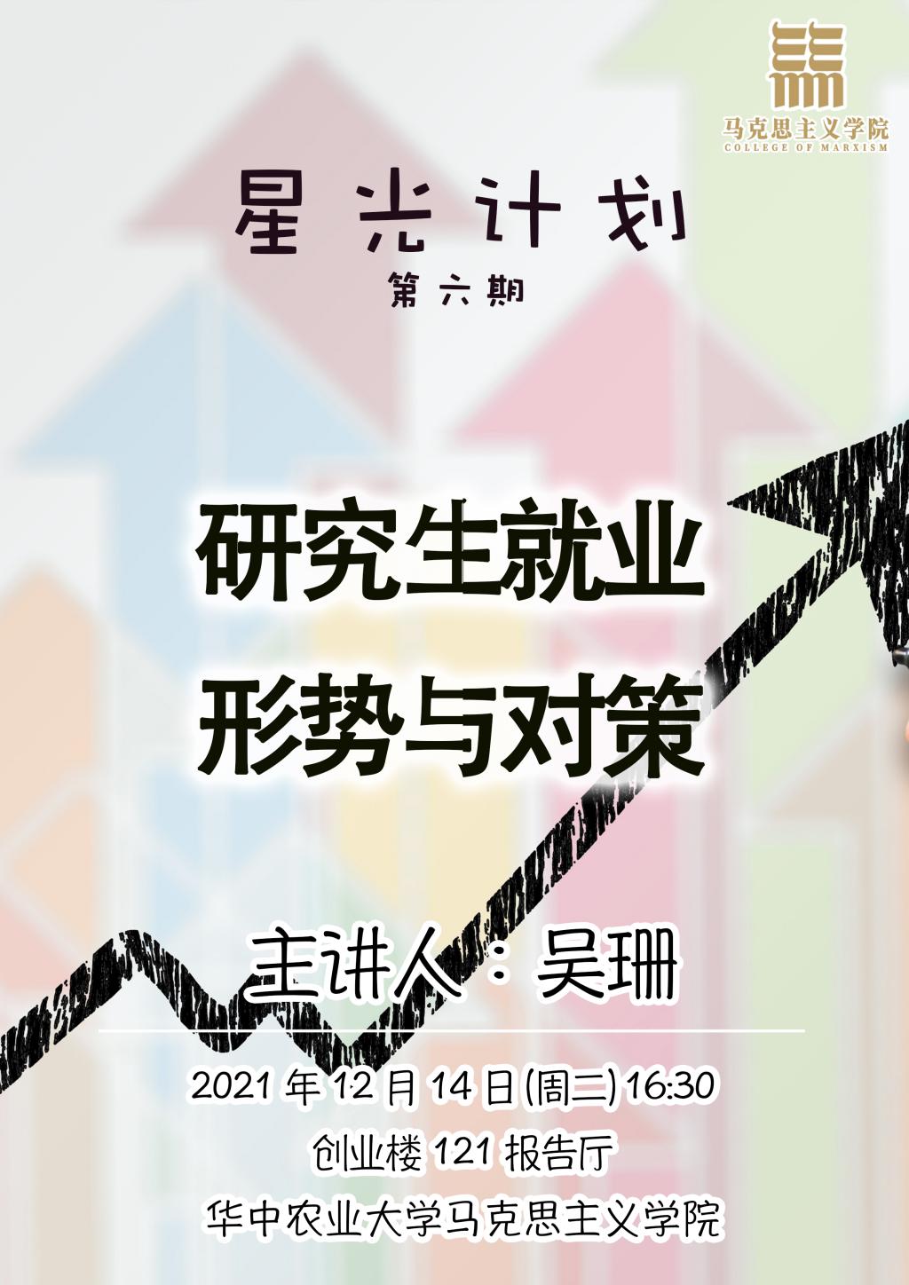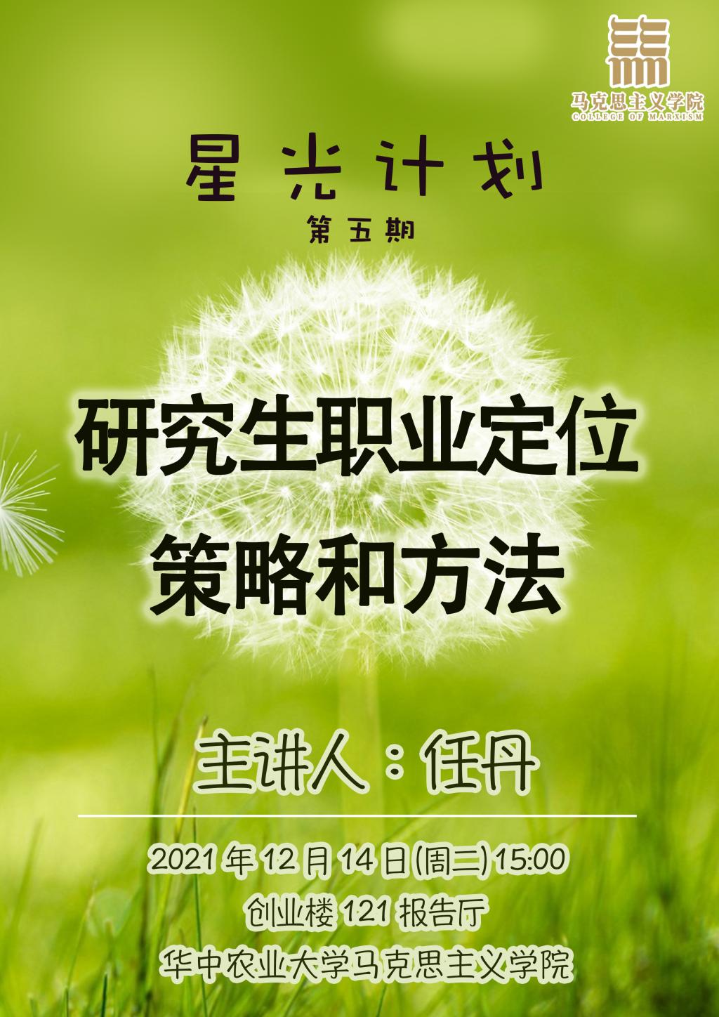 12月14日下午,9428cn太阳集团在创业楼121报告厅举办了研究生能力素质提升“星光计划”第五期、第六期的专题讲座。学校大学生就业指导中心主任任丹老师、学院党委副书记吴珊老师分别以“研究生职业定位策略和方法”“研究生就业形势与对策”为主题,从职业定位、能力提升、就业形势、就业路径等多个方面为研究生提供就业指导。