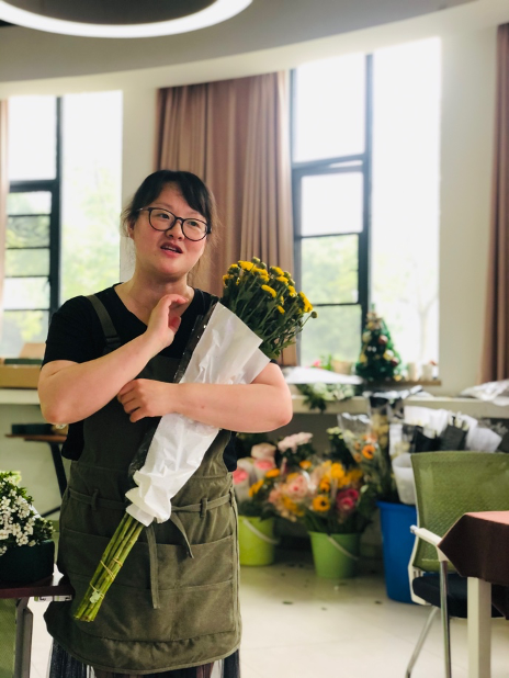 在花艺鉴赏环节,王媛媛老师讲授了插花艺术的相关知识和技巧。王老师依次介绍了花艺的历史、花的分类、花艺样式等,她谈到,东方插花的渊源由来已久,可追溯到《国风·郑风·溱洧》,“维士与女,伊其将谑,赠之以勺药。”一枝芍药从《诗经》中走来,随时光荏苒,香飘千年。王老师边进行插花演示边讲解插花的注意事项以及方式方法,比如挑选的花需“大大小小”,插花的布局需“上上下下”、错落有致等等。最后,王老师以及其两位助手就同学们插花实际操作过程中的问题进行了现场交流和指导。