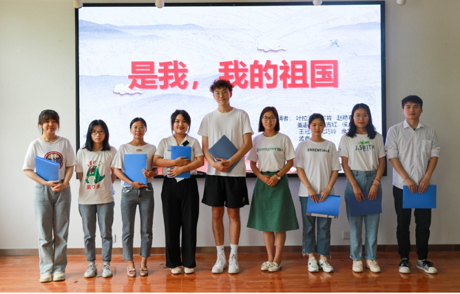 在美文鉴赏环节,同学们依次进行了《致橡树》《少年中国说》《是我,我的祖国》三首诗歌朗诵。其中,《是我,我的祖国》是由2020级研究生叶拉满·叶尔肯同学为庆祝建党100周年原创的诗歌,通过对党的百年征程的回顾和传颂,表达了同学们用党的奋斗历程鼓舞斗志,用党的伟大成就坚定信念,用党的优良作风凝聚力量的思想情感。