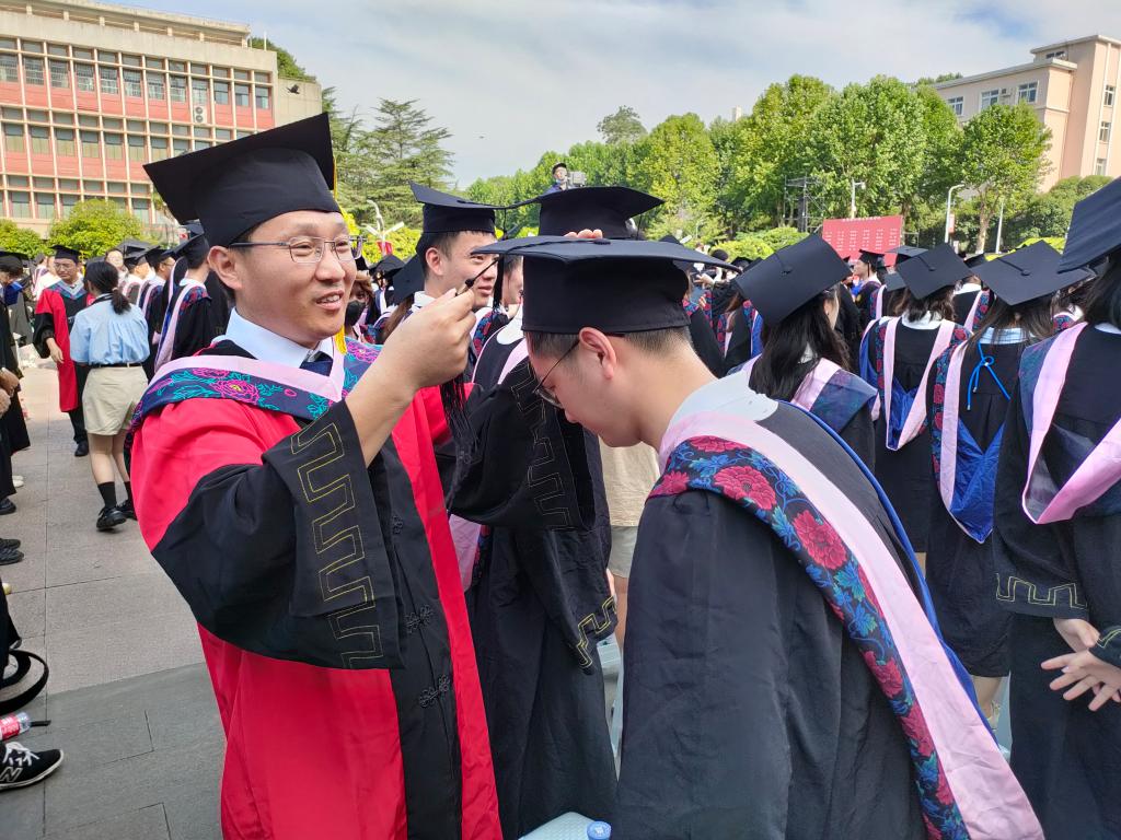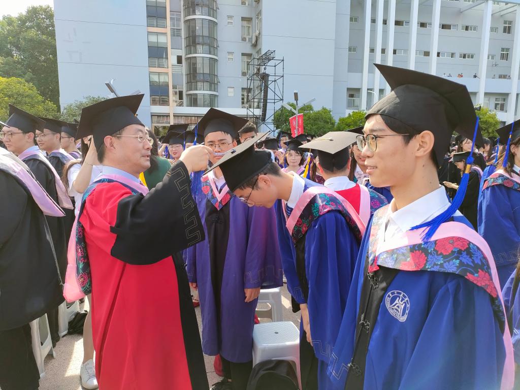 6月26日,学校在狮子山广场隆重举行2022年毕业典礼暨学位授予仪式。在悠扬的乐声中,校学位评定委员会委员梁伟军院长、霍军亮副院长到学院方阵,为硕士学位获得者行拨穗礼。