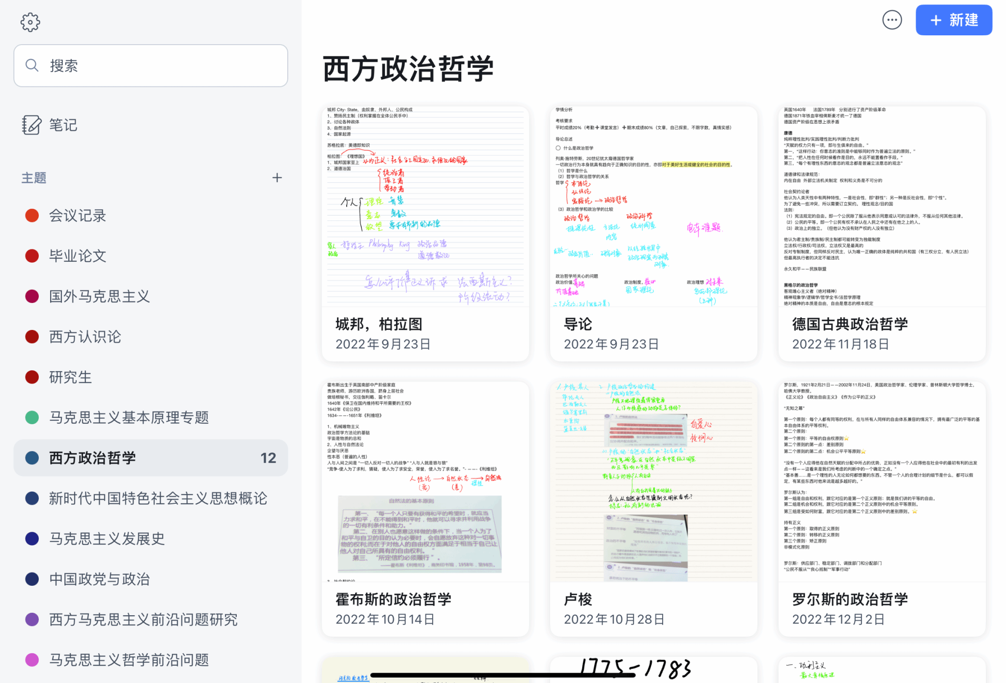 对于每一个跨专业的同学而言,研究生初期的课程无疑是很有挑战性的,姜子岳表示那段时光是累且快乐的,同时也是收获满满的一段时光。马克思主义基本原理课程涉及面广、相关学派人物众多,为了查阅资料,弥补专业知识的不足,他每天往返于图书馆与研究室,学习新软件制作思维导图,阅读20余本专业书籍并做详尽记录。成绩均分90.27,200余份作业与思维导图,32场学术报告,数万字纸质和电子版阅读笔记,陪伴着他将一片荒地孕育成绿洲。