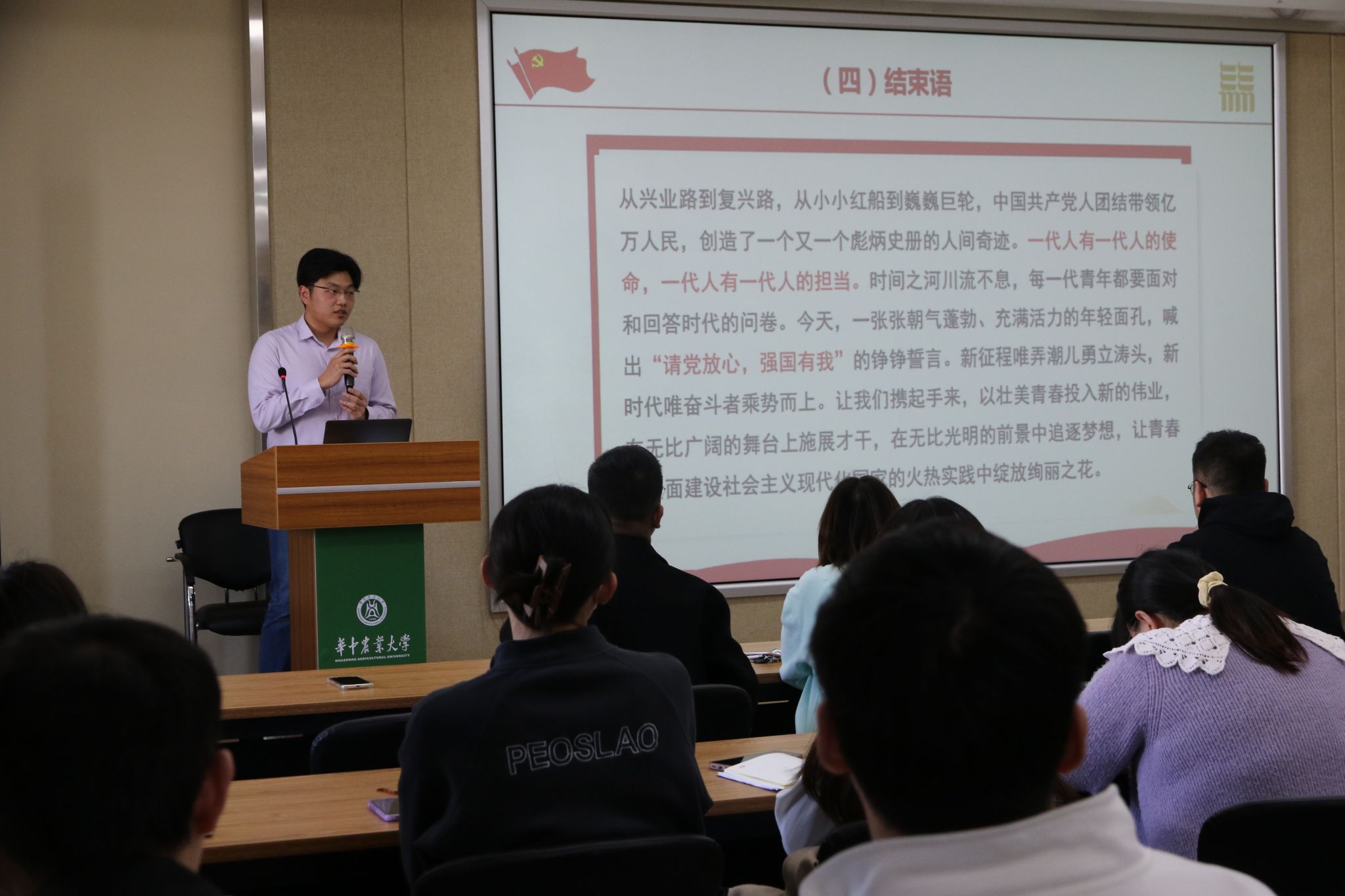 姜子岳参与录制的精品课程“学习二十大,奋进新征程”主题微党课,入选为洪山区优质党课并进行展播。同时,他组织带领马院研究生“精读精讲”宣讲团的同学们进行近100场宣讲,推动党的创新理论入脑入心入行。他用自己的实际行动践行每次宣讲结尾提到的“在无比广阔的舞台上施展才干,在无比光明的前景中追逐梦想”。