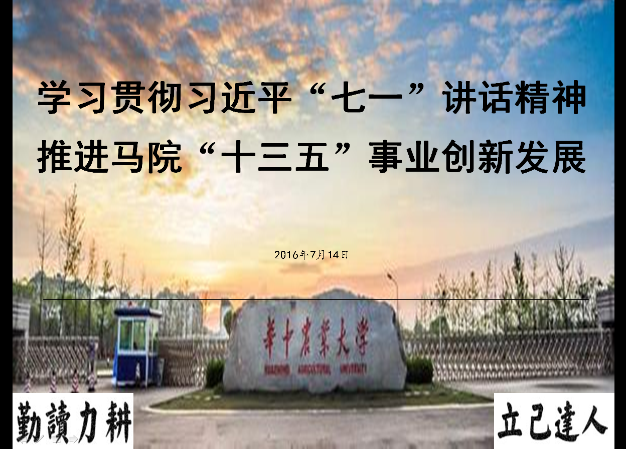 7月14日下午,我院在M327会议室召开全院党员和教职工大会,学习贯彻习近平总书记“七一”重要讲话精神,统一思想,提高认识,共绘“十三五”学院事业创新发展蓝图。