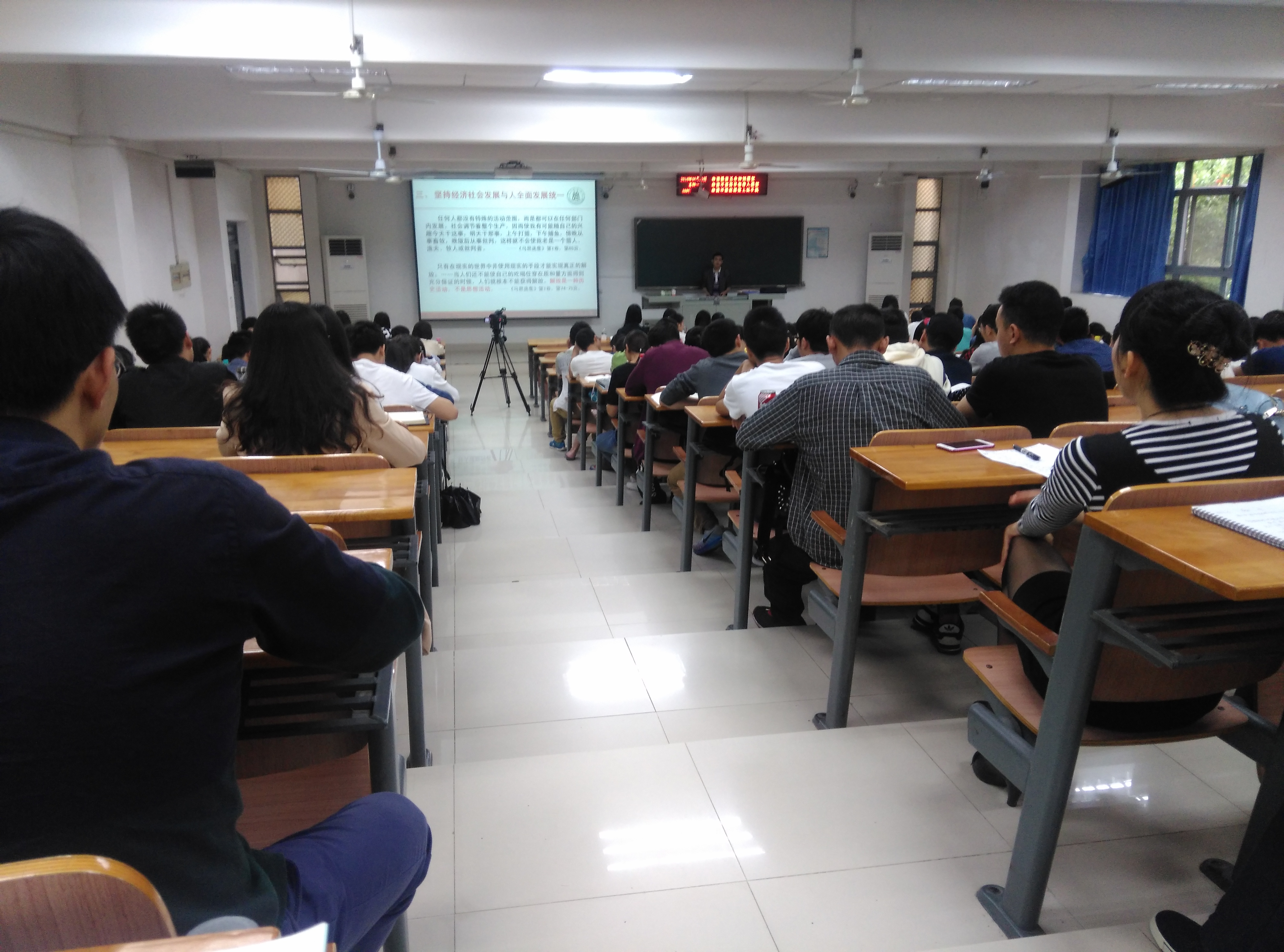 5月23日上午,由胡丰顺副教授主讲的“建设中国特色社会主义的根本目的和依靠力量”示范课在三教C205展开。资源与环境学院13级资环、环工专业的学生以及9428cn太阳集团和其他学院部分教师共同聆听了这次讲课。