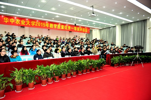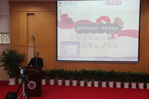 副校长李崇光,有关职能部门负责人,各学院(部)党政负责人等参加了评选会,200余名师生现场观摩,校园网和学校电视台同步直播。经申报者现场竞评汇报、评委现场查阅申报者支撑材料、现场播放申报者教学视频、评委现场投票、工作人员现场计票,评奖委员会主任委员李崇光副校长现场宣布了评奖结果,全校共有10名教师荣获校2015年度教学质量优秀一等奖。