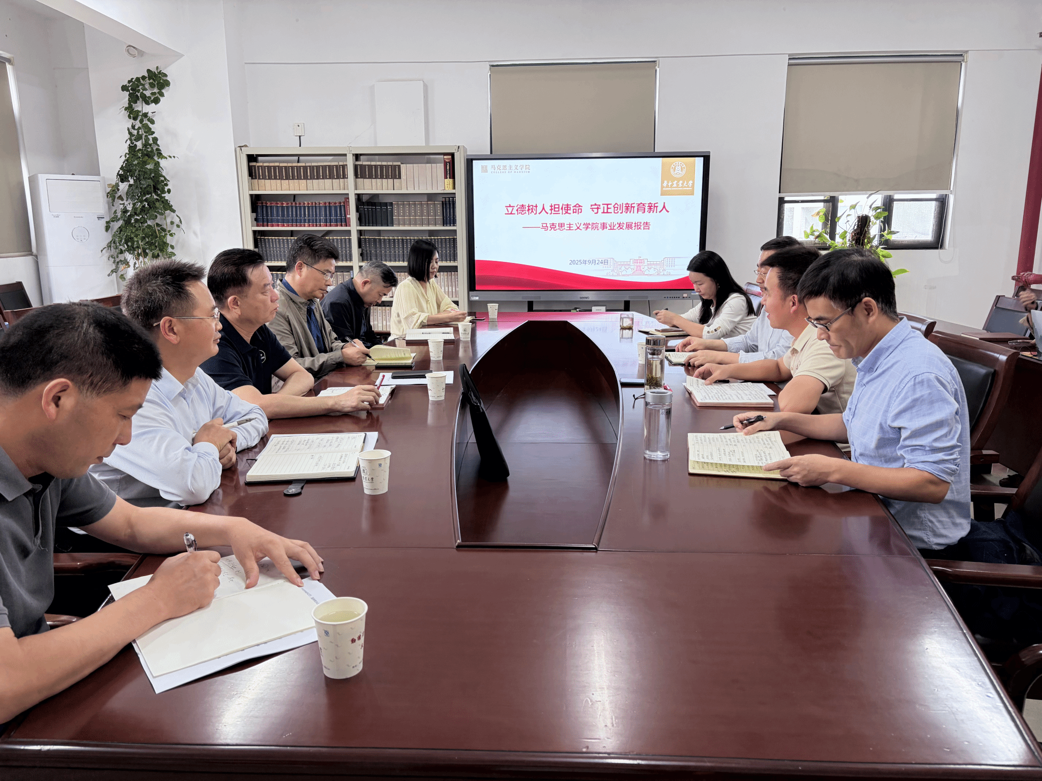院长梁伟军代表学院班子围绕“立德树人担使命,守正创新育新人”,重点从发展现状、存在问题,对策措施三个方面系统汇报了学院工作情况。与会职能部门负责人围绕数智课程建设、思政课集体备课、学科方向凝练、研究生学术动力激发、师资队伍建设、党建思政品牌创建等方面提出了诸多中肯意见和建议。