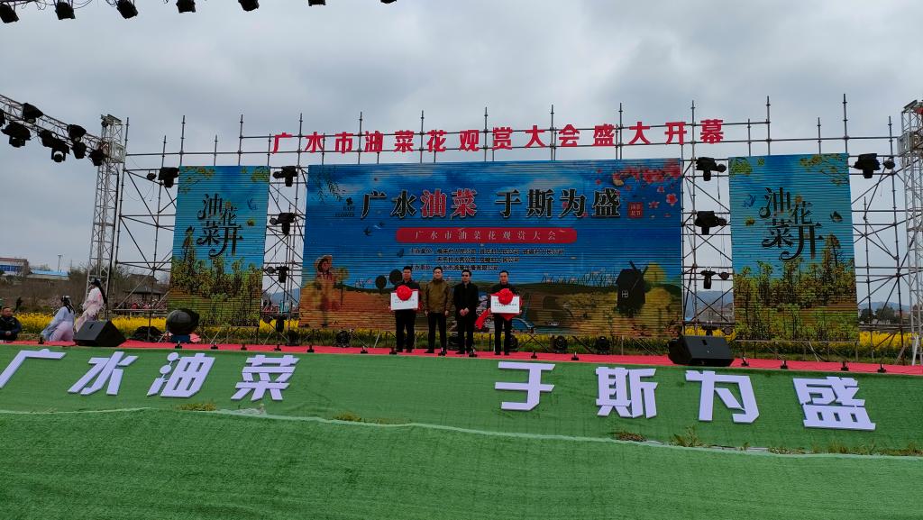 在24日上午举行的广水市首届“广水油菜 于斯为盛”油菜花观赏大会开幕式上,程华东、吕守华作为学校代表分别授予广水市关庙镇“思政课教学和研究生培养实践基地”和“油菜标准化种植实验示范基地”。本届大会由广水市文化旅游局、市农业农村局、市乡村振兴局、关庙镇、市融媒体中心、市新时代文明实践中心联合举办,广水市关庙镇铁城村人民公司、天子村人民公司、梅庙村人民公司、肖店村人民公司联合承办。