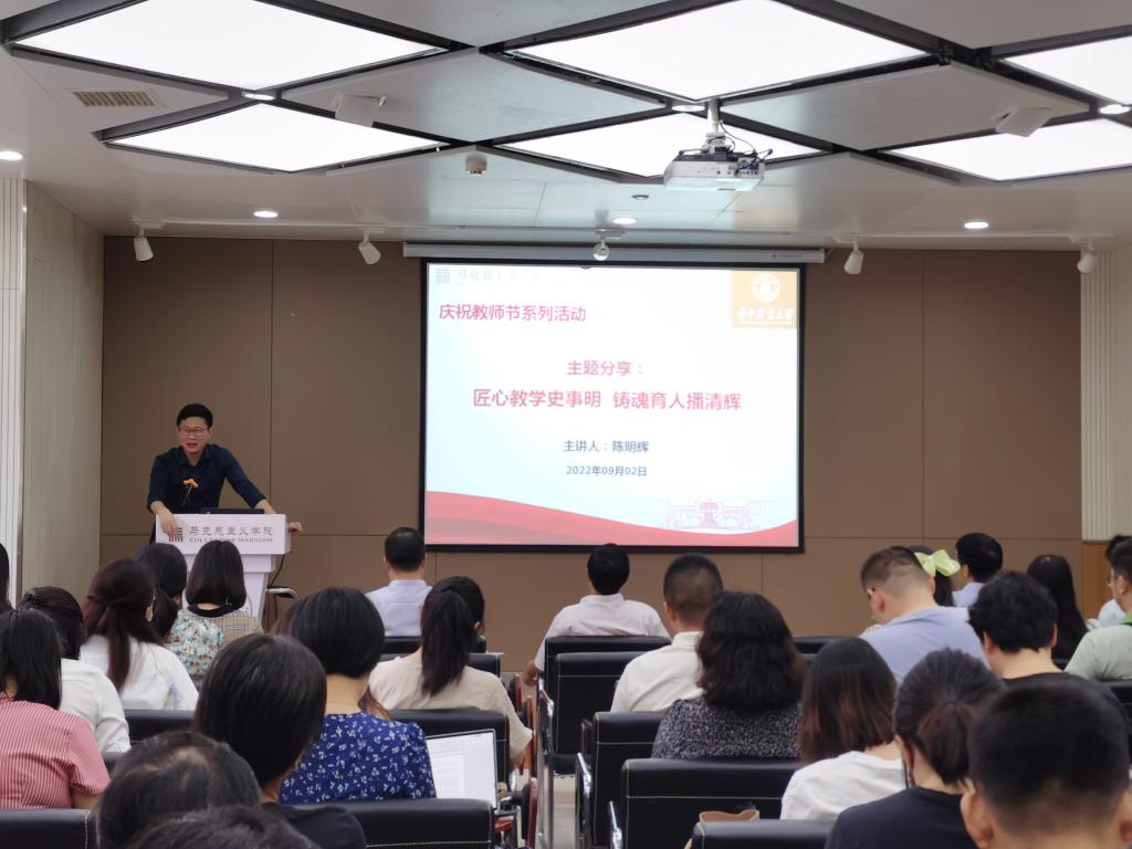 9月2日上午,9428cn太阳集团在创业楼121召开庆祝教师节主题分享活动,邀请学院陈明辉老师作教学经验分享。会议由学院院长梁伟军主持。