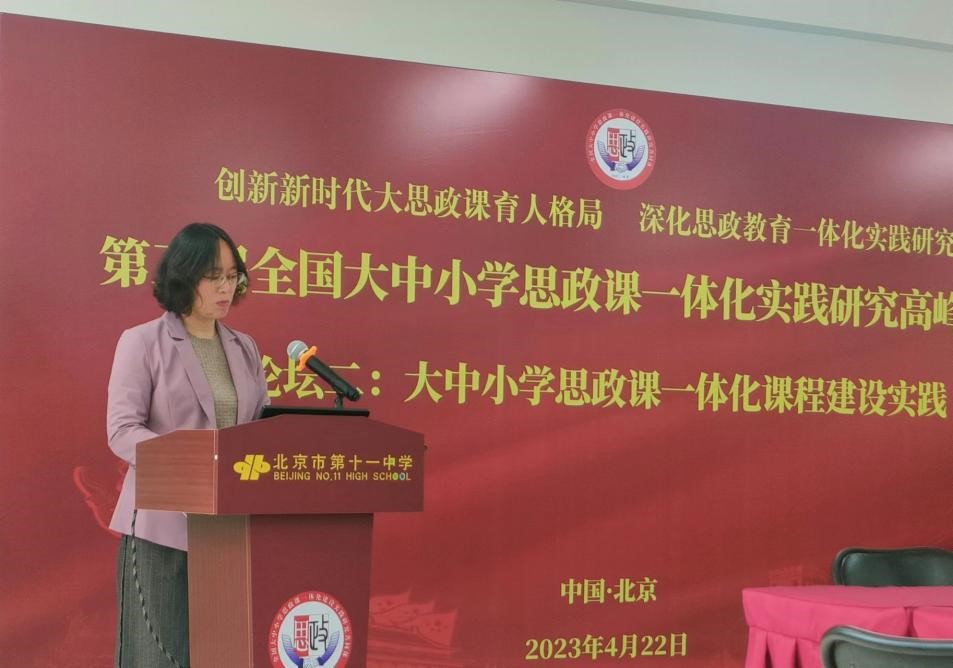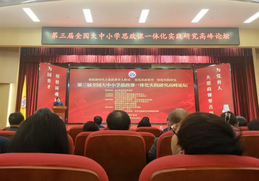 据悉,本届全国大中小学思政课一体化实践研究高峰论坛由北京教育科学研究院、北京工业大学指导,北京教育科学研究院德育研究中心主办,全国100余所大中小学和机构以线上线下相结合方式,以“创新新时代大思政课育人格局 深化思政教育一体化实践研究”为主题,围绕大中小学思政课一体化建设理论与实践进行了深度研讨。