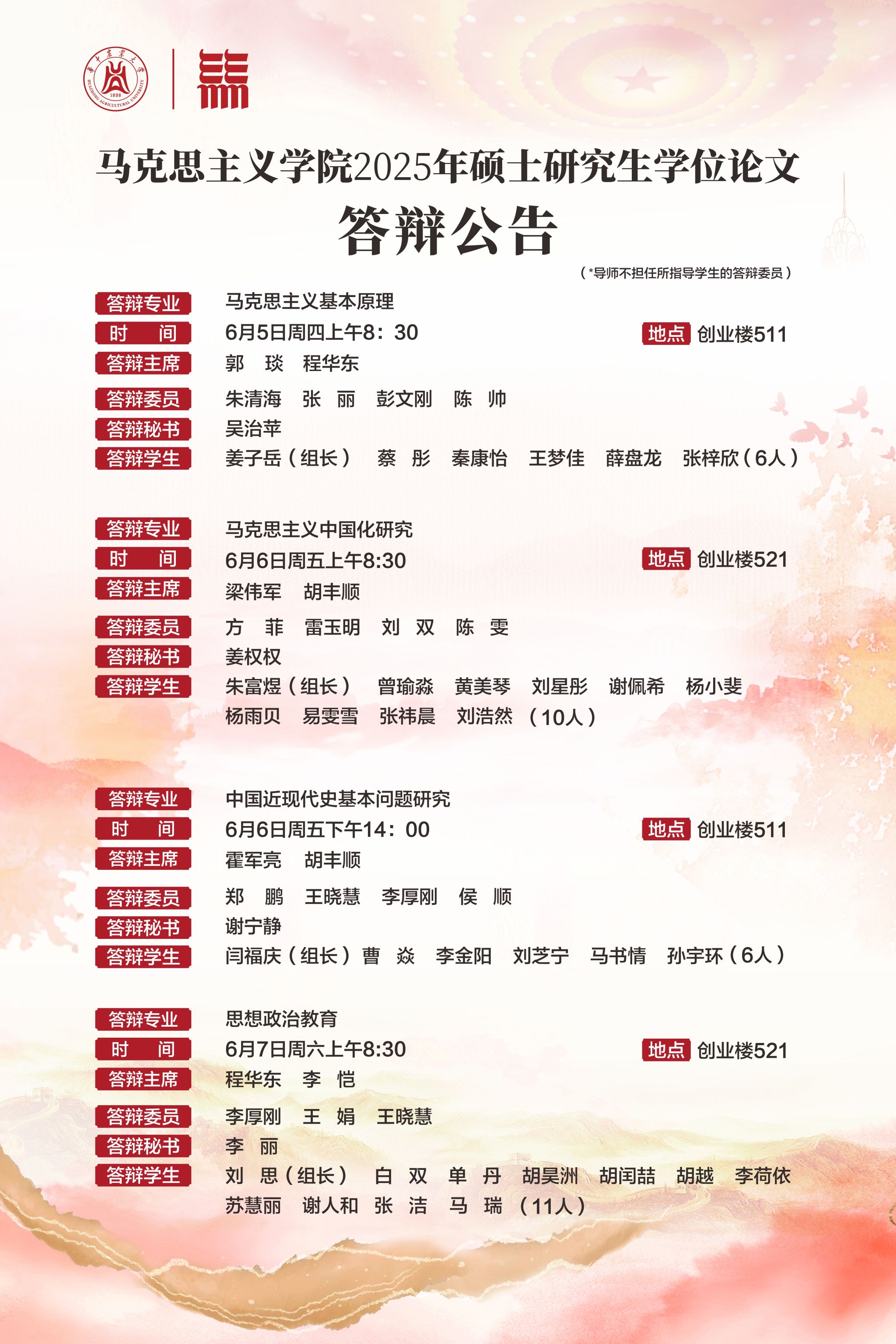 【活动预告】马院2025年硕士研究生学位论文答辩公告